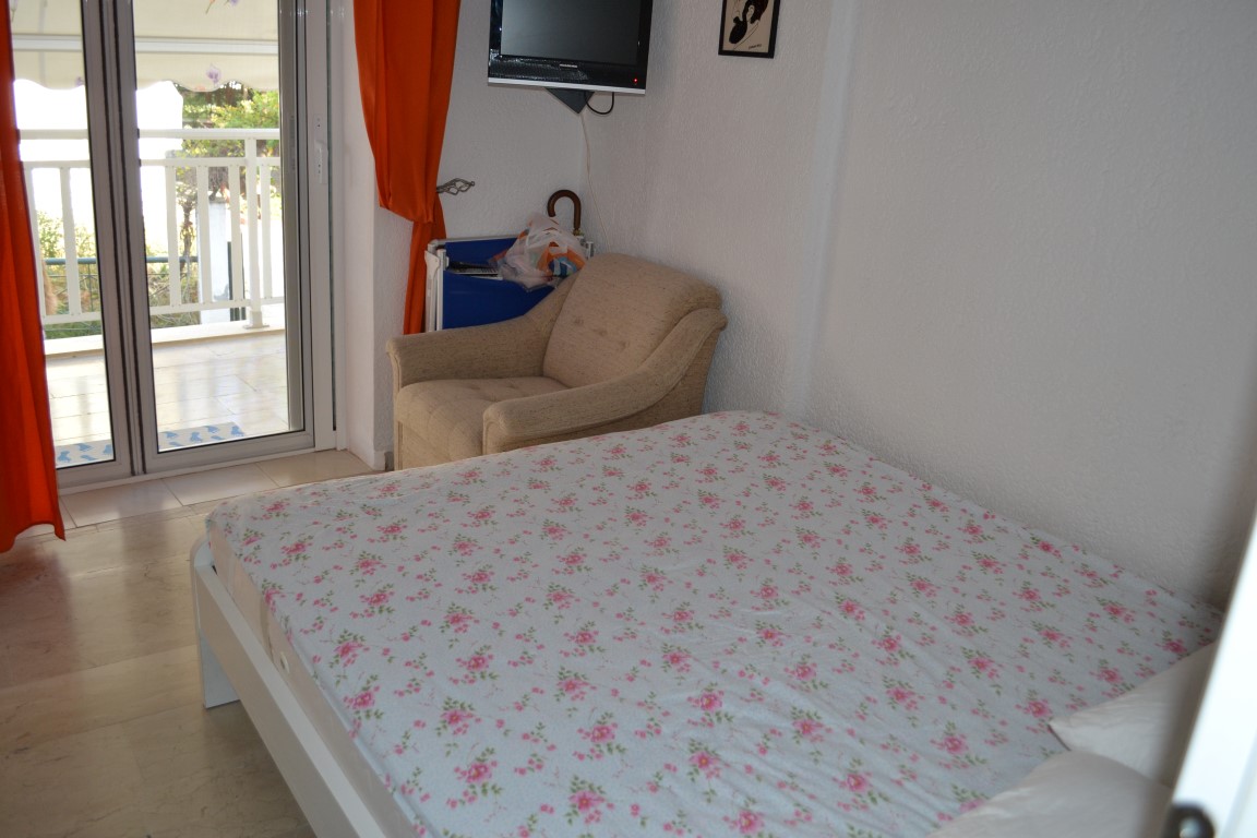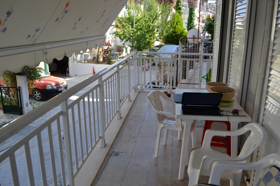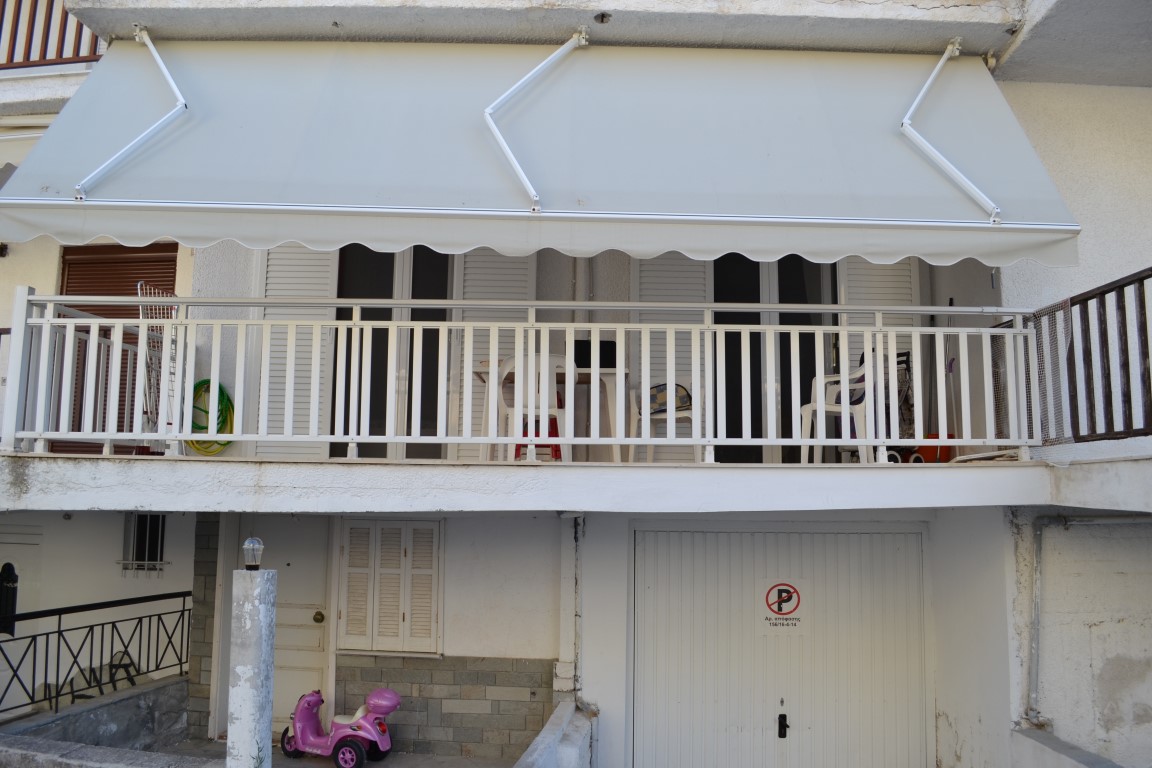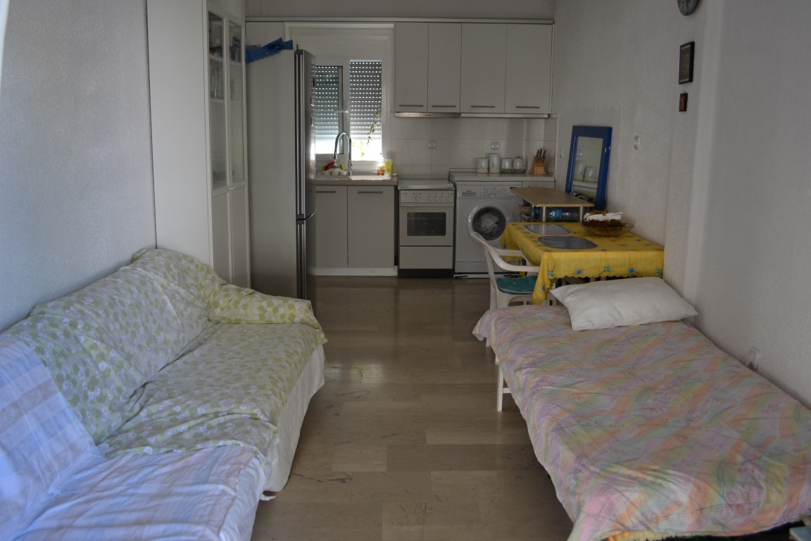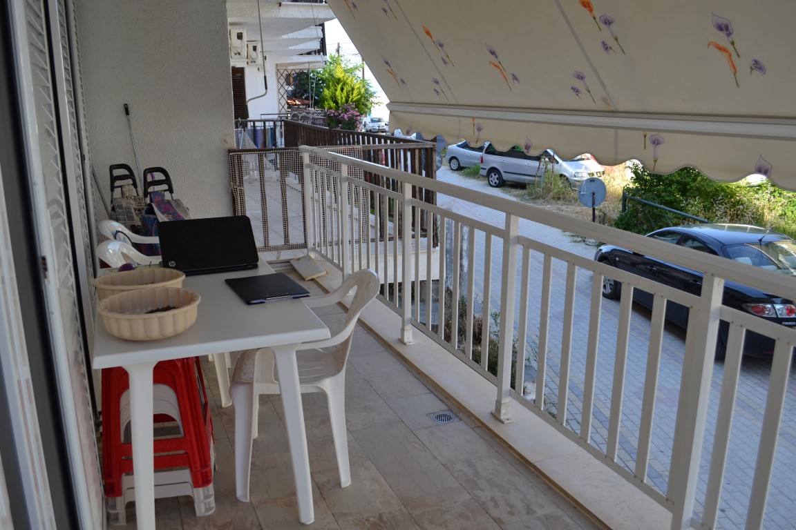 Apartment for sale area of 42 sqm on the Kassandra Peninsula, Halkidiki, Greece The apartment is located on the second floor and consists of one bedroom, living room with kitchen, one shower room. The Windows offer views of the city. The object has air conditioning, awnings. To the property belongs a garage.