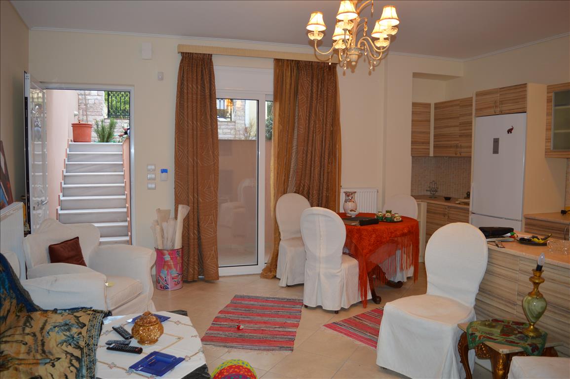 For sale 2-storey cottage of 130 sq. meters in Attica. The basement consists of one bedroom, living room with kitchen, one bathroom. The first floor consists of 2 bedrooms, living room with kitchen, one bathroom. The Windows offer views of the city. The object has air conditioning. The property is sold with furniture. To the property belongs a Parking place, garden, garage. The cottage is situated in the center of Artemida