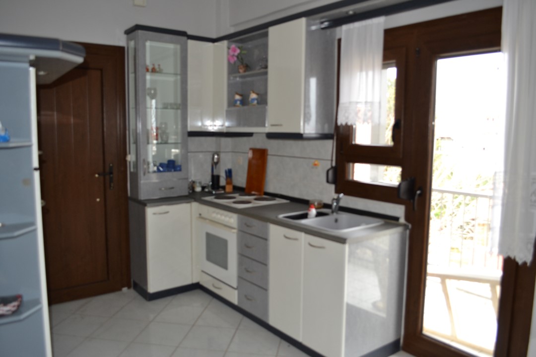 Apartment for sale 50 sqm in Kassandra, Halkidiki, Greece The apartment is located on the third floor and consists of 2 bedrooms, living room with kitchen, one shower room. The apartment has a corner location. The Windows offer views of the city. The object has a fireplace, air conditioning. The property is sold with furniture.
