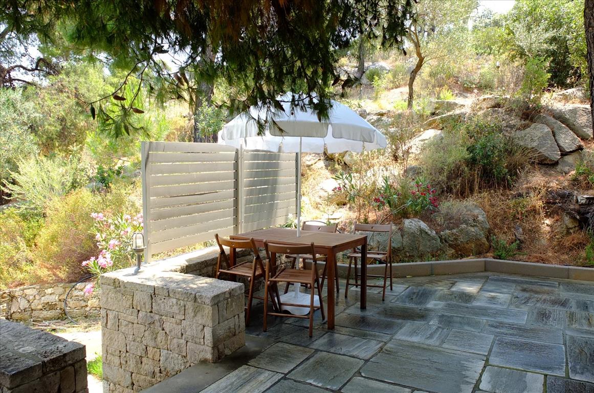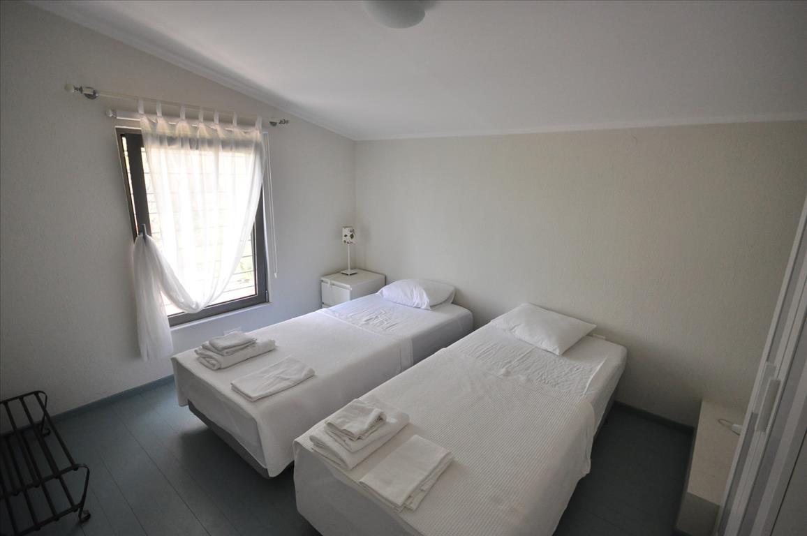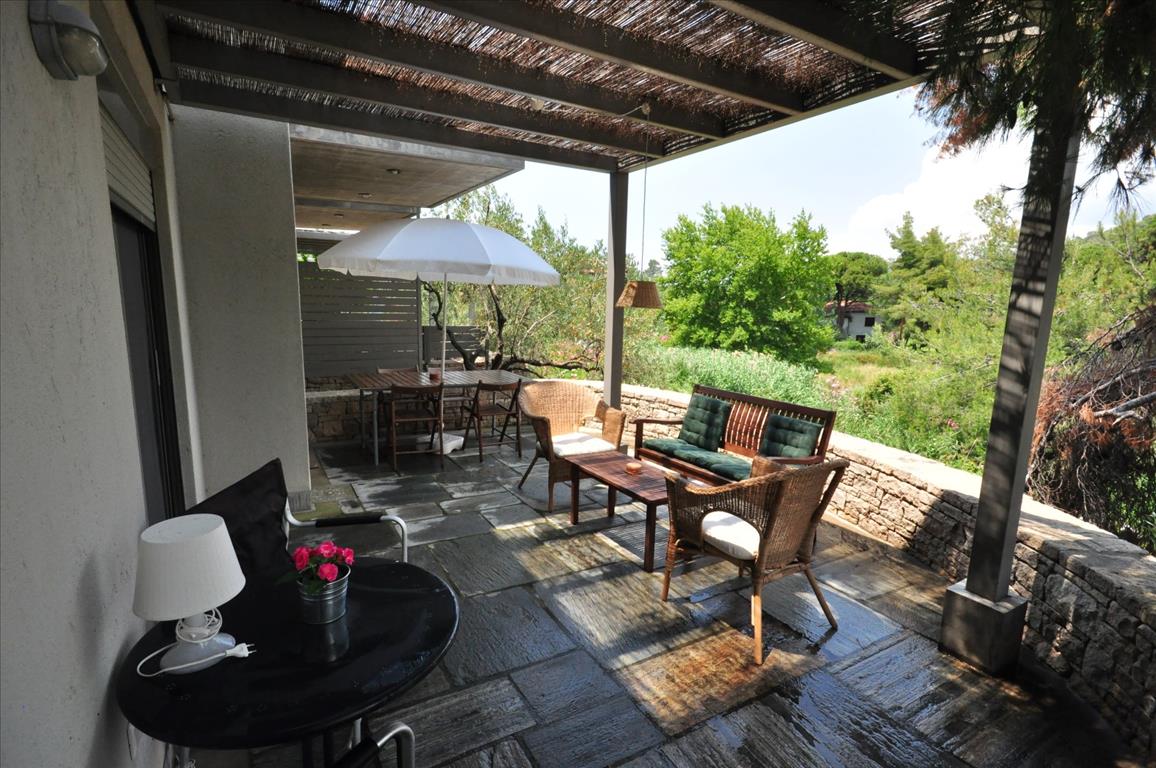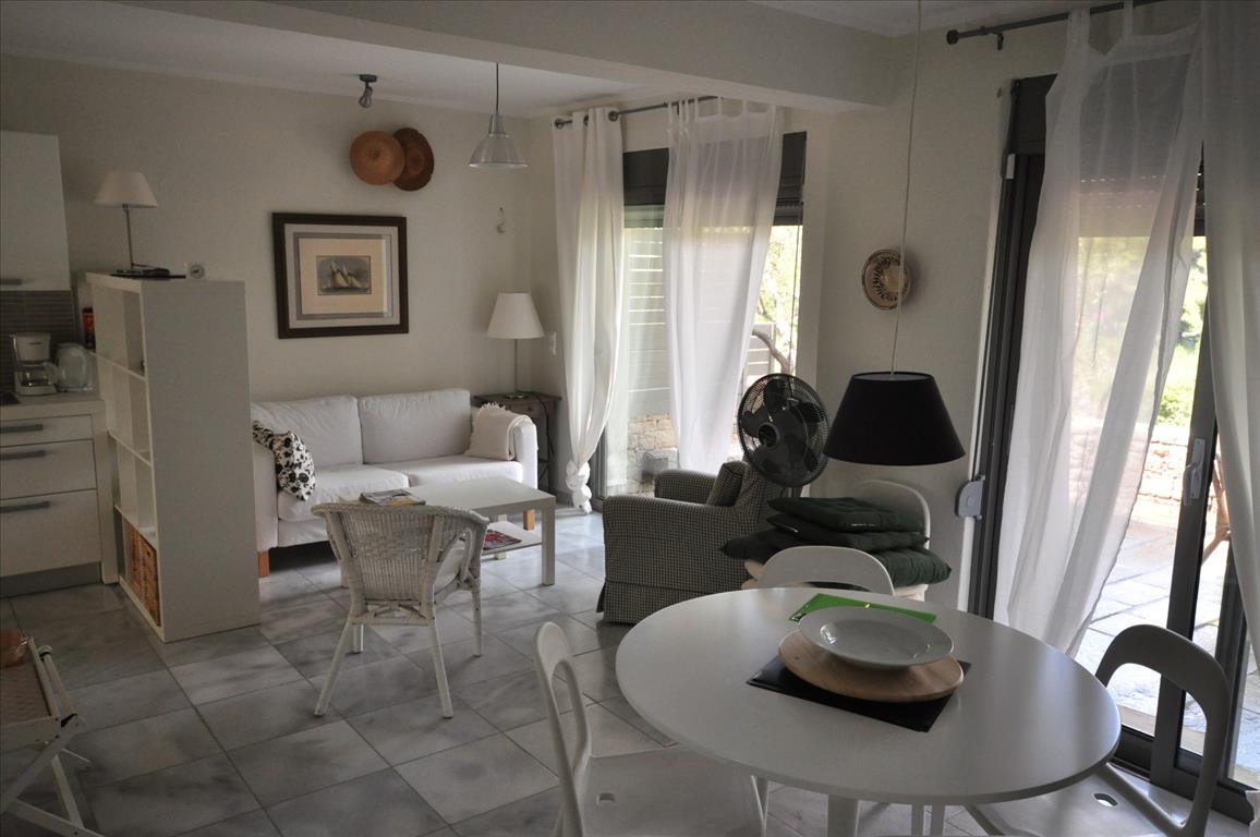 Sale townhouse of 120 square meters in Sithonia, Halkidiki, Greece The townhouse is on 3 levels. The basement consists of 2 bedrooms, one shower room. The first floor consists of living room with kitchen. The second floor consists of 2 bedrooms, one shower room. The townhouse enjoys a corner location. The Windows offer views of the sea, the forest. The object has a fireplace, air conditioning. The object has an alarm system. To the property belongs a Parking space.