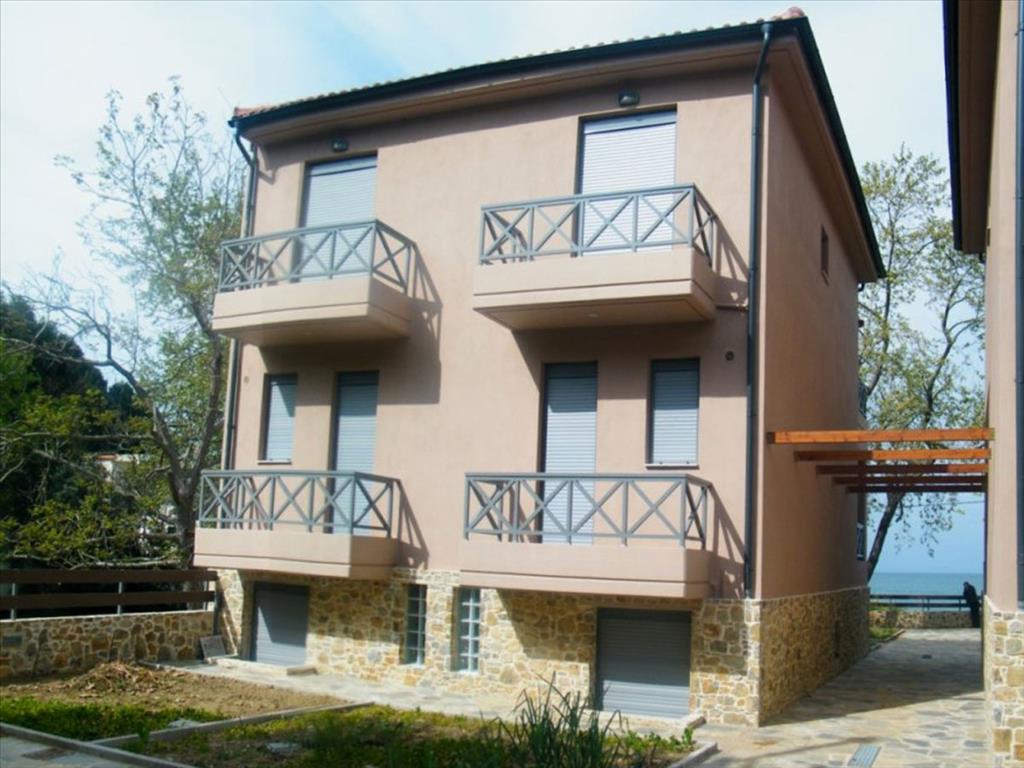 Sale house with an area of 104 sq m at the Olympic Riviera. The townhouse is on 3 levels. The basement consists of one bedroom, one bathroom, one storeroom. The first floor consists of living room with kitchen. The second floor consists of 2 bedrooms, one shower room. The Windows offer a magnificent view of the sea, the mountains. To the property belongs a Parking space.