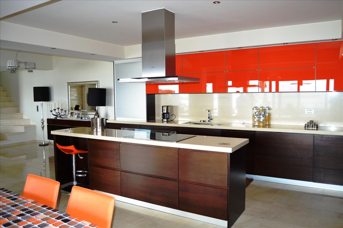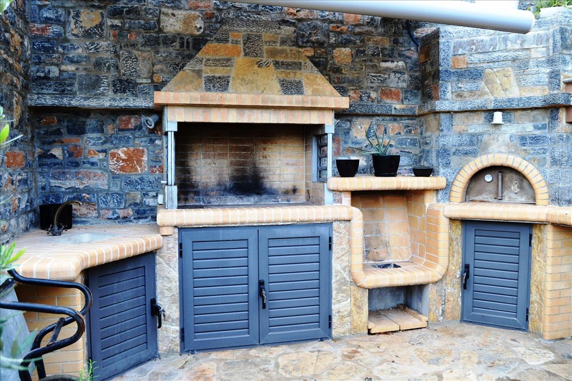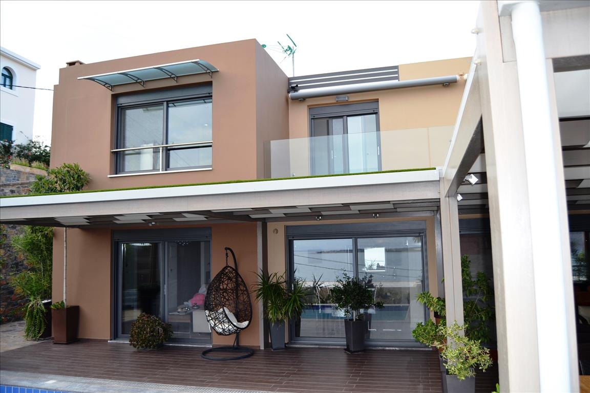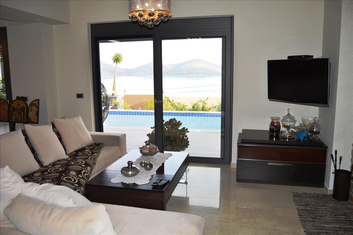 For sale three level Villa with an area of 260 sq m on the island of Crete in Elounda. Has a magnificent view of the sea, the mountains, the city, the forest also has furniture, armored doors, solar panels for water heating, fireplace, air conditioning, awnings, private pool, Parking space, garden, barbecue, heating, alarm system, storeroom. The first level of the Villa consists of two bedrooms, two bathrooms with showers, a Laundry room, a dressing room and gym. The second level consists of a spacious living room and kitchen with panoramic sea views, master bedroom and guest bathroom. The third level consists of two large bedrooms with sea views and bathroom with shower. The well maintained plot has an area of 450 sq. m, automatic irrigation and a garden with beautiful shrubs and flowers.
