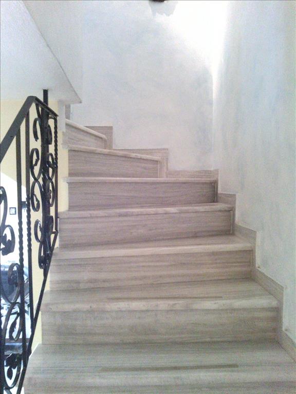 Sale of 165 sq m in Thessaloniki. The townhouse is on 3 levels. The first floor consists of living room with kitchen, one shower room. The second floor consists of living room with kitchen, one bathroom. The third floor consists of 3 bedrooms, one bathroom. The townhouse enjoys a corner location. The Windows offer views of the mountains and the city. The object has a fireplace, barbecue, heating. To the property belongs a Parking space.