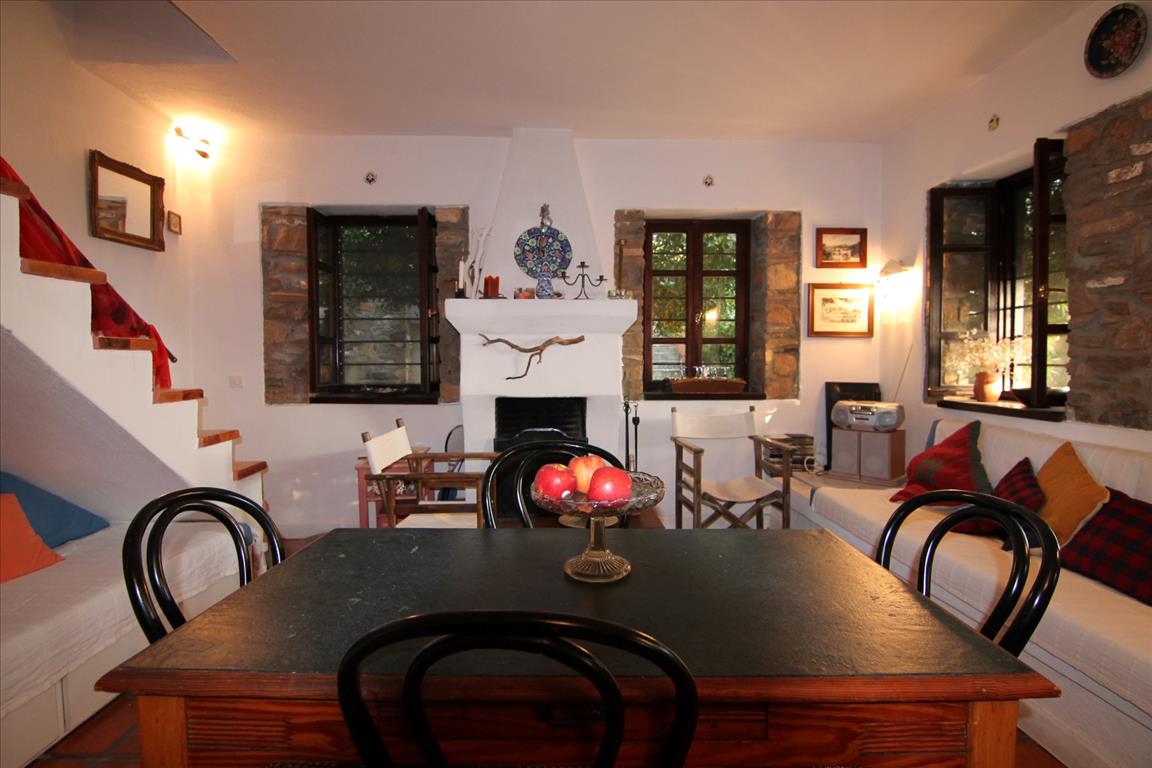 For sale 2-storey cottage with an area of 70 sqm in Sithonia, Halkidiki, Greece The first floor consists of living room with kitchen, one shower room. The second floor consists of 3 bedrooms, one shower room. The cottage enjoys a corner location. The Windows offer a magnificent view of the sea, the mountains and the forest. The object has a fireplace, air conditioning, heating. The property is sold with furniture. To the property belongs a Parking space.