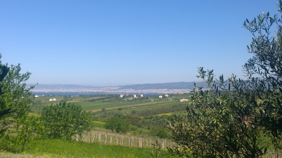 For sale land area 7280 sq. m. in the suburbs of Thessaloniki. On-site construction, water, electricity, and there is a building permit. Has a magnificent sea view. On site there are two cottages under construction.