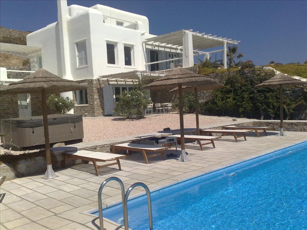 Villa for sale with area of 700 sq m in Mykonos. The Windows offer a magnificent view of the sea, the mountains, the city, the forest. The object has a fireplace, air conditioning. To the property belongs a garden. The on-site swimming pool personal use. The Villa is located on a hilltop above lia beach on Mykonos island, is secluded, very large modern Villa, which offers fantastic views of the sea and the village with guaranteed peace of mind. Attractive new modern style has both a main Villa and guest house with separate entrances. They have similar style. Green garden, flowers and small palm trees, the spacious outdoor areas, rectangular pool and plenty of terraces. The interiors are bright, white, ultra-size, minimalist design and with modern equipment. Fully equipped kitchen, access to a side terrace, communicates with a spacious living room and connects to the front terrace of the Villa overlooking the sea and the pool. The main house has two bedrooms on the ground floor; each with side terrace and three bedrooms on the upper floor; two have a terrace with sea view and balcony, third one has own back patio. The guest house has one upper bedroom with view of the sea and two others on lower level; one has access to the pool terrace and the other has side access to the garden and pool. Fully equipped kitchen, living and dining room, open floor plan, pool and garden, modern Jacuzzi for six seats. The staff has its own entrance to the main Villa and the guest house, and Laundry facilities. Mykonos 5LB is a unique object of real estate, in terms of size and style, perfect for a large family or group of friends looking for spacious rooms for General use, comfortable accommodation with absolute privacy the Villa is also rented at the prices. 20.000 for August. 19.000 for July. 18.000 за Июнь 17.000 за Май 16.000за Сентябрь . 15.000 for October New layer...