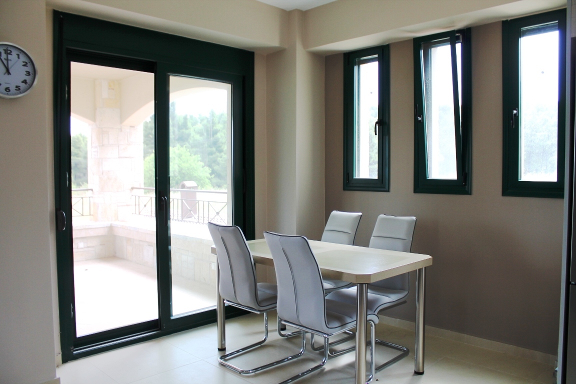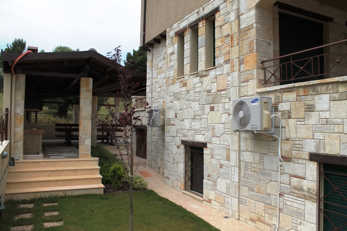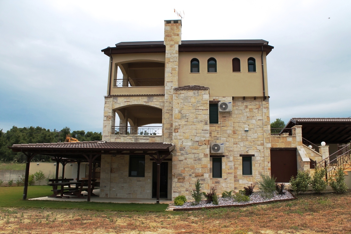 For sale 3-storey cottage with an area of 140 sqm on the Kassandra Peninsula, Halkidiki, Greece The first floor consists of 2 bedrooms, living room with kitchen, one shower room. The second floor consists of living room with kitchen, one bathroom. The third floor consists of 2 bedrooms, one shower room. The Windows offer a magnificent view of the sea, the mountains and the forest. The object has solar panels for water heating, fireplace, air conditioning, barbecue, heating. The property is sold with furniture. The object has an alarm system. To the property belongs a Parking space, garden.