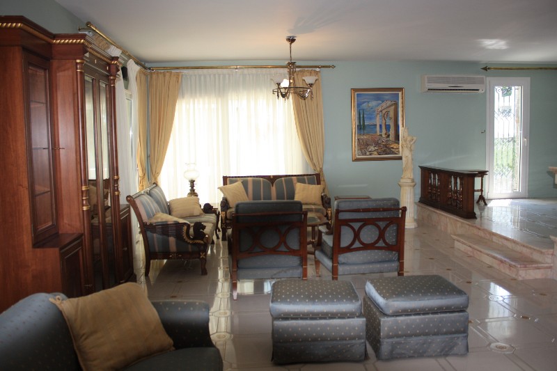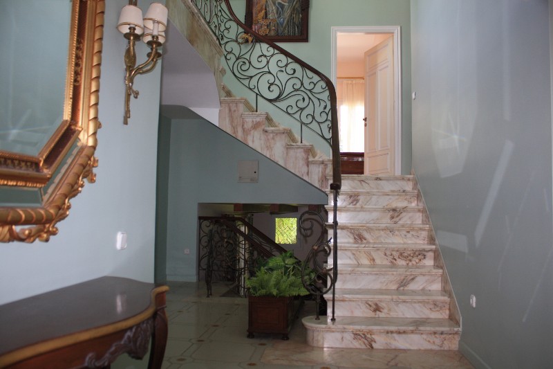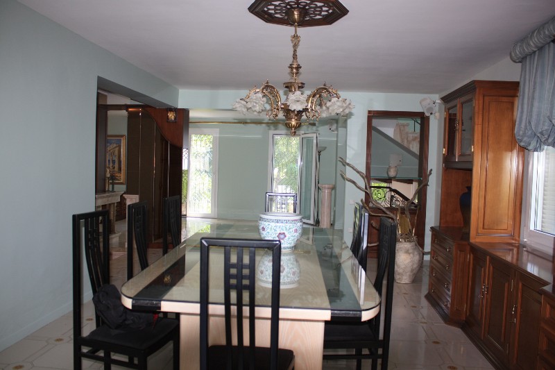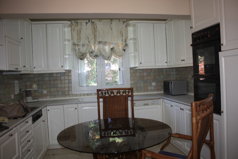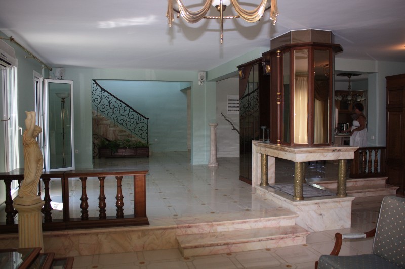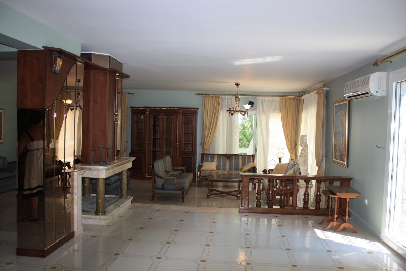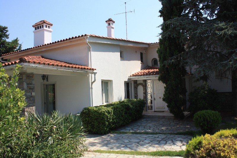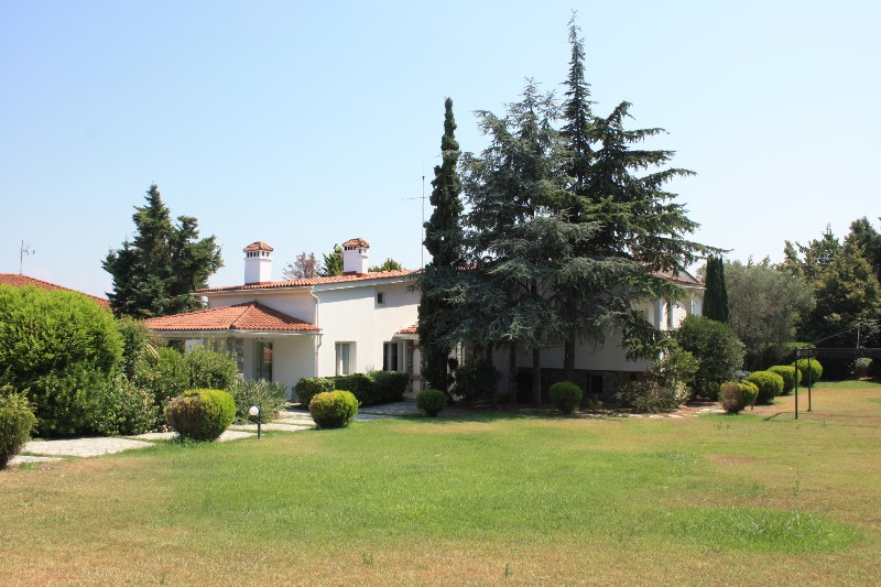 For sale 3-storey Villa with an area of 750 sq m in the suburbs of Thessaloniki. The first floor consists of one bedroom, living room with kitchen, one shower room, one pantry. The second floor consists of 3 bedrooms, living room with kitchen, one bathroom, one shower room, one bathroom. The third floor consists of 2 bedrooms, living room with kitchen, one shower room. The Villa has a corner location. The Windows offer a magnificent view of the sea, the mountains and the forest. The object has a fireplace, barbecue, heating. The property is sold with furniture. To the property belongs a Parking space, garden. The on-site swimming pool personal use.