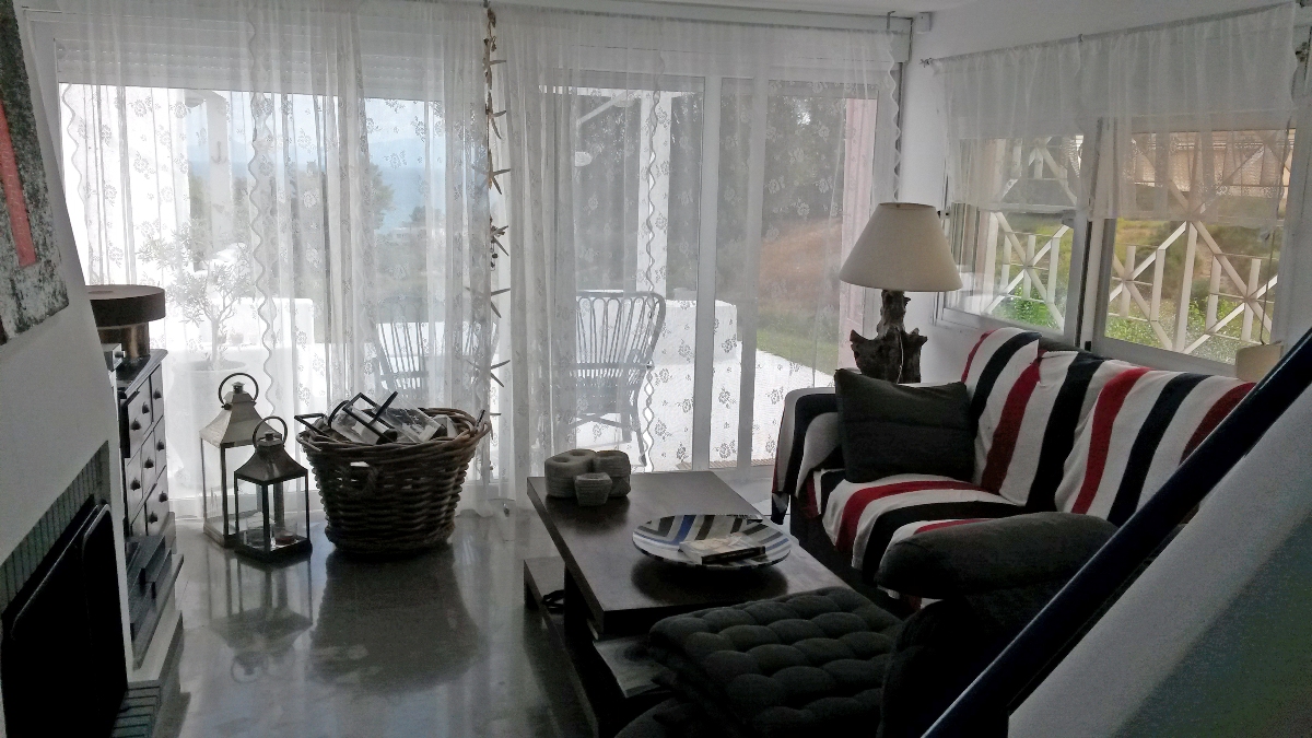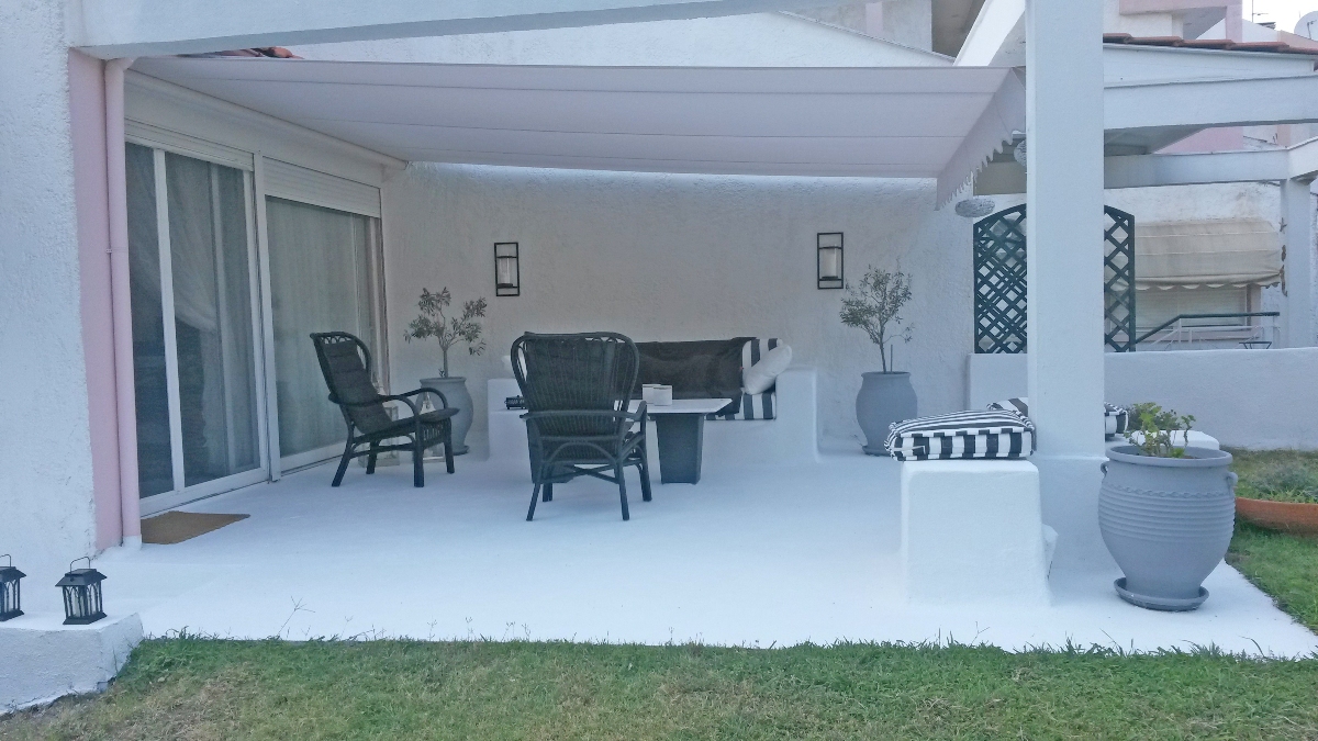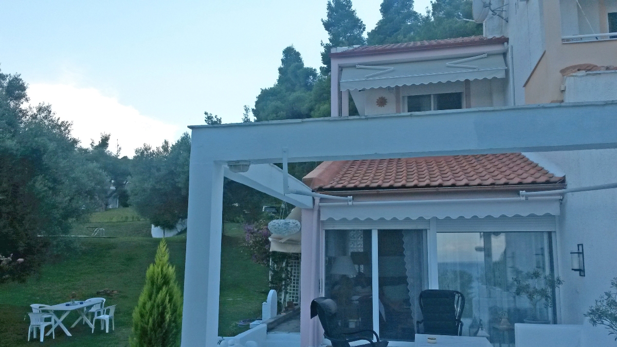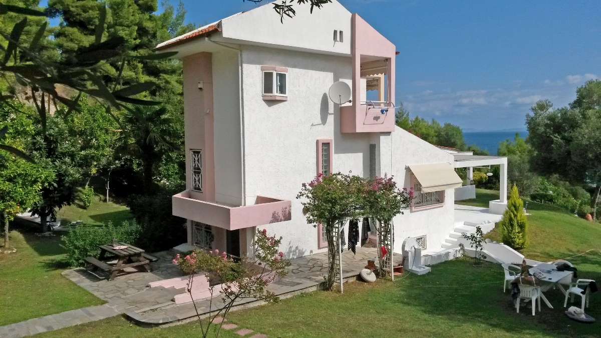 Sale house with an area of 106 sqm on the Kassandra Peninsula, Halkidiki, Greece The townhouse is on 3 levels. The basement consists of one bedroom, one kitchen, one shower room. The first floor consists of one bedroom, living room. The second floor consists of one bedroom, one shower room. The townhouse enjoys a corner location. The Windows offer a magnificent view of the sea, the forest. The object has a fireplace. The property is sold with furniture. To the property belongs a Parking space. The on-site swimming pool personal use.