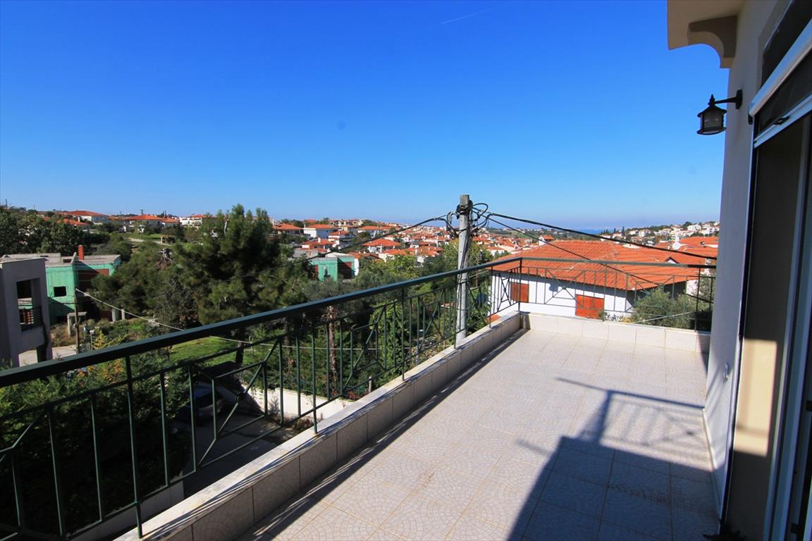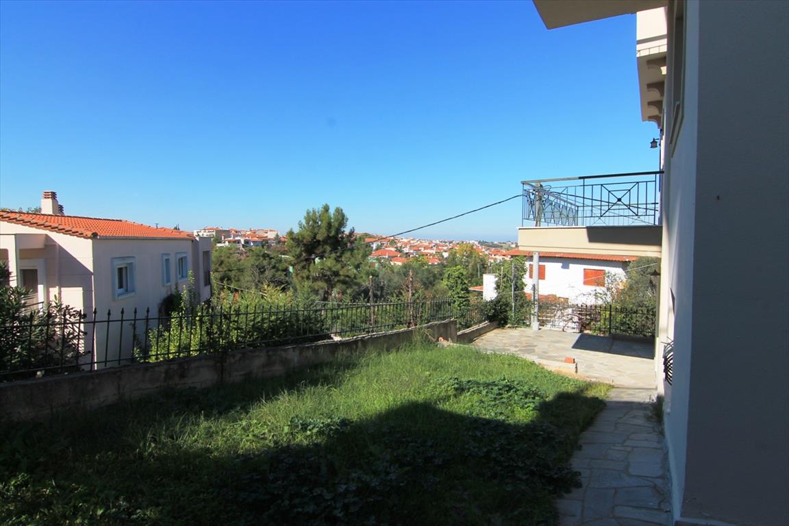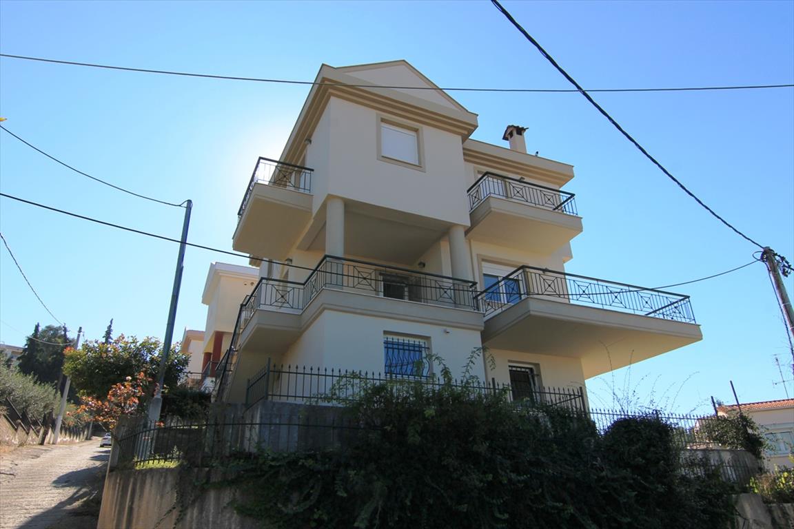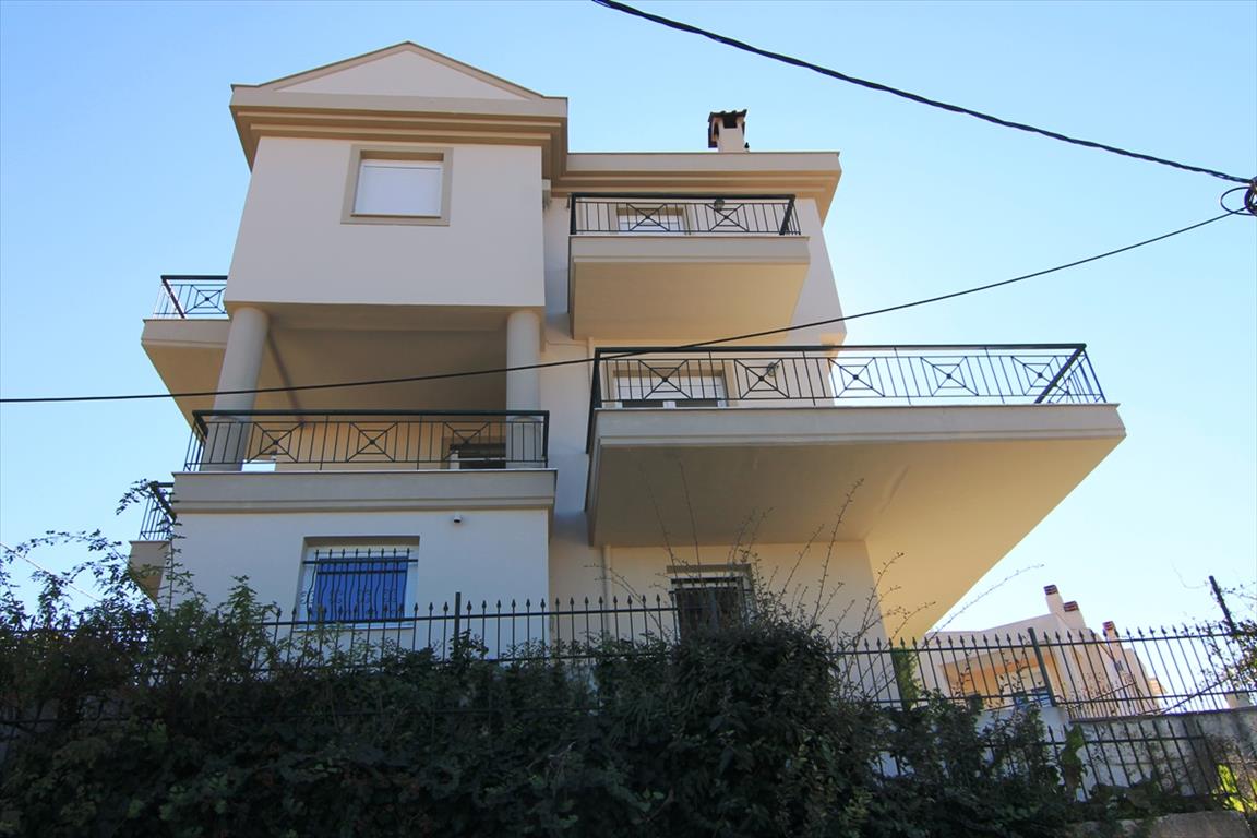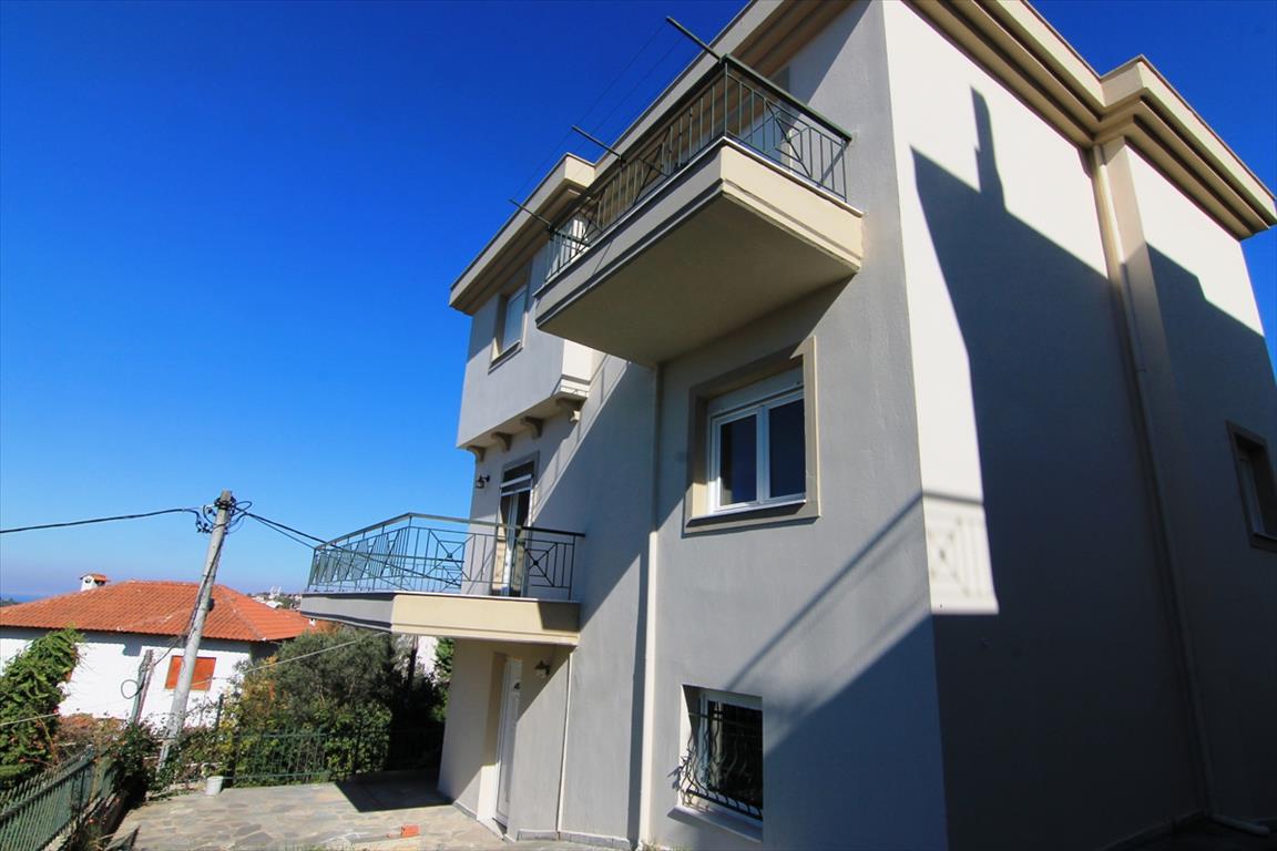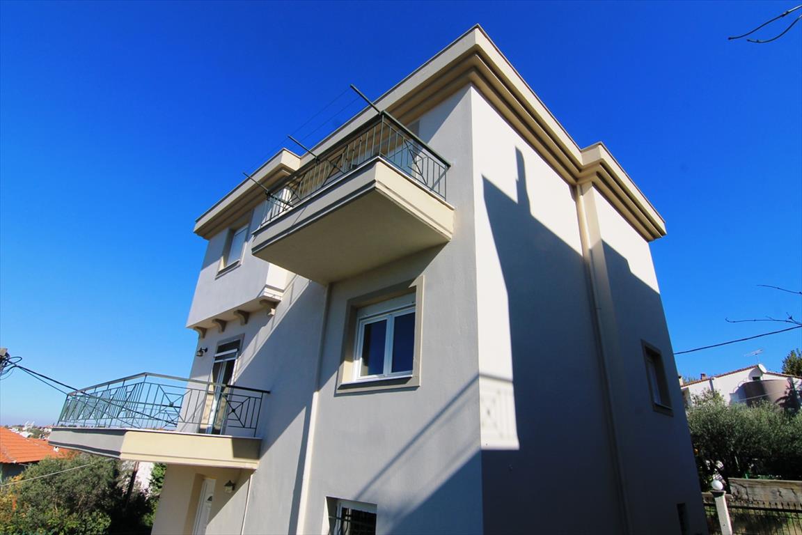 Sale house with an area of 204 square meters in the suburbs of Thessaloniki. The townhouse is on 3 levels. The first floor consists of living room with kitchen, one shower room, one pantry. The second floor consists of living room with kitchen, one bathroom. The third floor consists of 3 bedrooms, one bathroom. The townhouse enjoys a corner location. The Windows offer views of the sea, the mountains, the city, the forest. The object has a fireplace, heating. To the property belongs a Parking space.