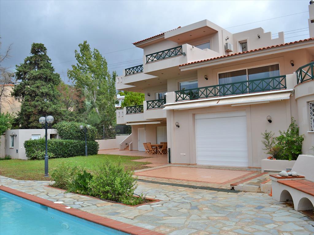 For sale 3-storey Villa area of 360 sq. meters in Attica. The first floor consists of 3 bedrooms, living room with kitchen, one bathroom, one bathroom. The second floor consists of one bedroom, living room with kitchen, one bathroom, one bathroom. The third floor consists of 2 bedrooms, living room, one bathroom. The Windows offer a magnificent view of the sea, the mountains, the city, the forest. The object has solar panels for water heating, fireplace, air conditioning, awnings, barbecue, heating. The property is sold with furniture. The object has an alarm system. To the property belongs a Parking place, garden, garage. The on-site swimming pool personal use. The Villa is located in raionirovanie. Artesian well in the garden.