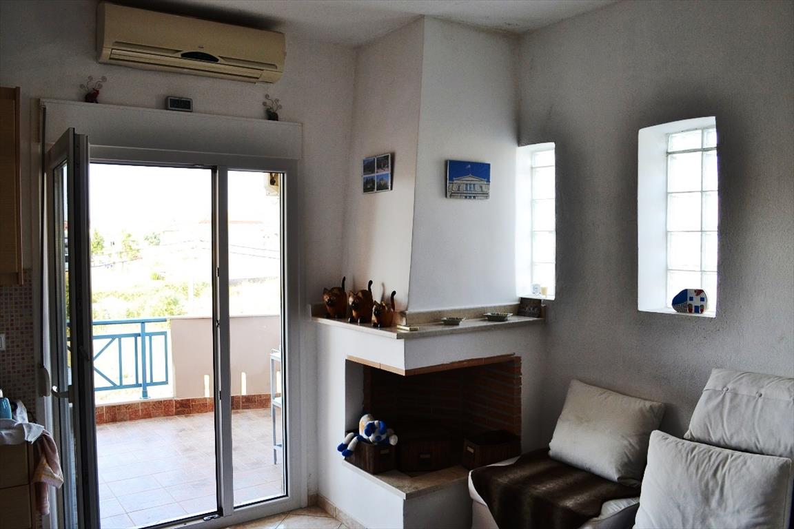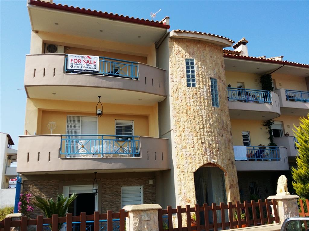 For sale apartment of 120 sqm in Kassandra, Halkidiki, Greece The apartment is located on the third floor and consists of 3 bedrooms, living room with kitchen, one shower room. The apartment has a corner location. The Windows offer views of the city. The object has a fireplace, air conditioning. The property is sold with furniture. There is also a attic floor with one bedroom.