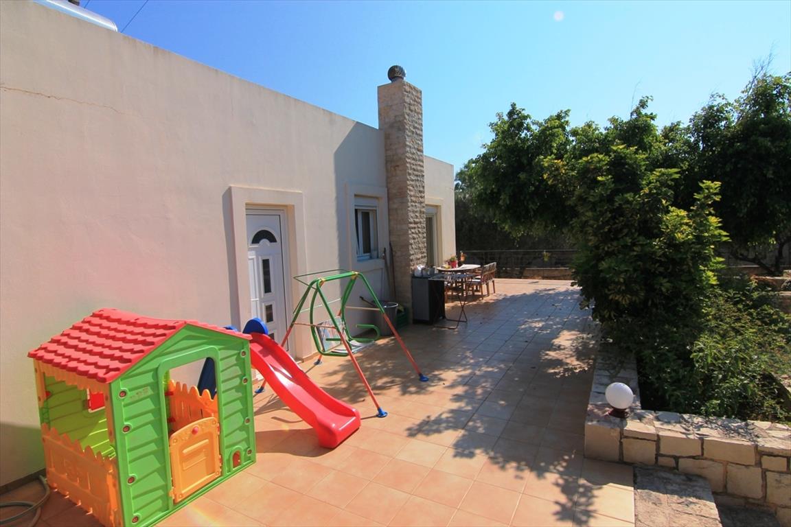 For sale 2-storey cottage area of 145 sqm on the island of Crete. The first floor consists of one bedroom, living room, one kitchen, one bathroom, one shower room. The basement consists of 2 bedrooms, living room, one kitchen, one shower room, one pantry. The Windows offer views of the mountains. The object has solar panels for water heating, fireplace, air conditioning, heating. To the property belongs a Parking space, garden.