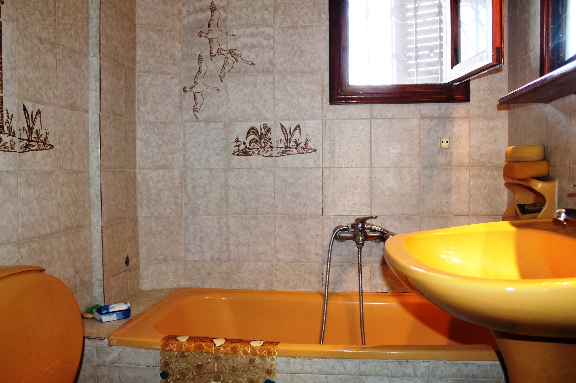 Sale townhouse of 150 sqm in Halkidiki. The townhouse is on 3 levels. The first floor consists of one storeroom. The second floor consists of living room with kitchen, one bathroom. The third floor consists of 3 bedrooms, one bathroom. The Windows offer views of the sea. The property is sold with furniture. To the property belongs a garden.