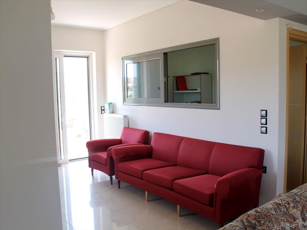 Apartment for sale 125 sqm in the attic. The apartment is located on the second floor and consists of 3 bedrooms, living room with kitchen, one bathroom, one WC, one storeroom. The Windows offer views of the mountains. The object has a fireplace, heating. The object has an alarm system. To the property belongs a Parking space, garden. The apartment is located on a plot of 2000sqm.m. in the area of Eastern Attica of Kitsi.
