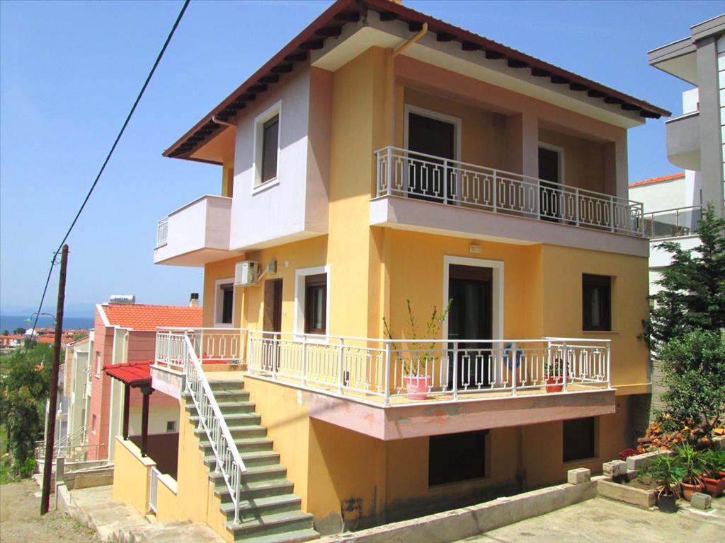 Sale 4-storey house with area of 210 sqm in Sithonia, Halkidiki, Greece The basement consists of a living room. The first floor consists of 2 bedrooms, living room with kitchen, one shower room. The second floor consists of living room, one kitchen, one shower room. The third floor consists of 2 bedrooms, one bathroom. The Windows offer a magnificent view of the sea. The object has solar panels for water heating, fireplace, air conditioning, heating. The property is sold with furniture. To the property belongs a Parking space.