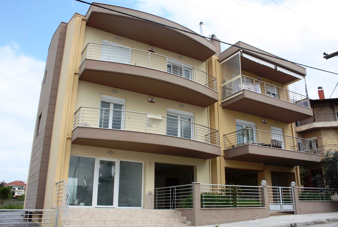 Apartment for sale 100 sqm in the suburbs of Thessaloniki. The apartment is located on the ground floor and consists of 3 bedrooms, living room with kitchen, one bathroom. The object has solar panels for water heating, heating. The building is an Elevator. The object has an alarm system. To the property belongs a Parking space, garden. Also commercial premises for sale area of 50 sq m at the price of 65000 euros in the same building.
