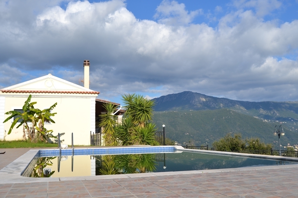 For sale 2-storey Villa of 250 sq m on the island of Corfu. The first floor consists of 3 living rooms with kitchen, 3 shower rooms. The second floor consists of 3 bedrooms, living room with kitchen, one shower room. The Villa has a corner location. The Windows offer a magnificent view of the sea, the mountains, the city, the forest. The object has a fireplace, air conditioning, heating. The property is sold with furniture. To the property belongs a Parking space, garden. The on-site swimming pool personal use. Nearby is a plot of 2050 sqm, with stunning sea views and with possibility to build 210кв.m. of living space.