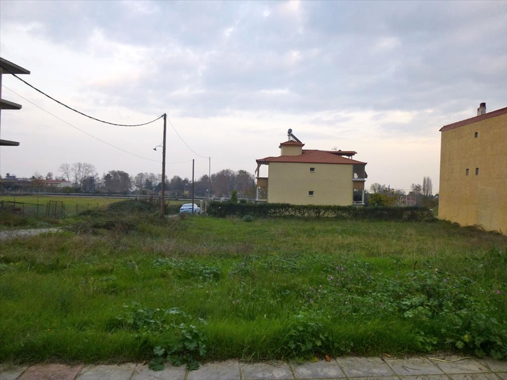 Land for sale 900 sqm Olympic Riviera. On-site water, electricity, and there is a building permit, with possibility to build 720 sq m. it Has views of the sea, the mountains and the city. The site is located in the centre of the resort Poselka and holds a permit for the construction of a three storey building containing a basement, shops and 10 apartments.