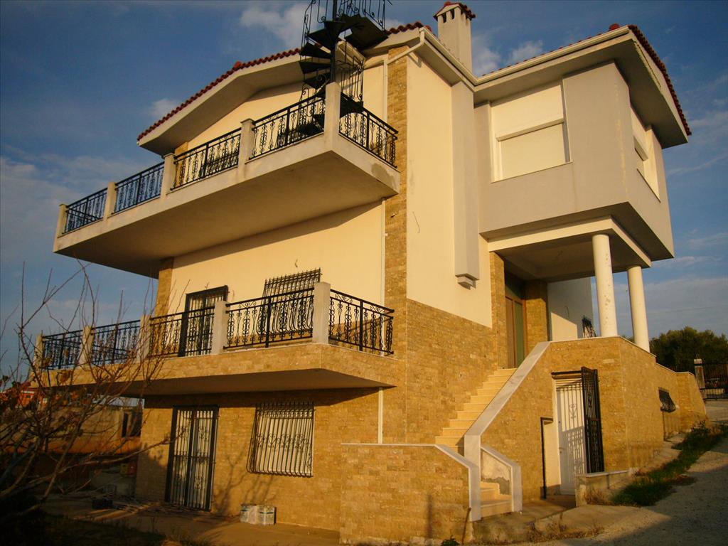 For sale 3-storey cottage area of 400 sq m in the suburbs of Thessaloniki. The first floor consists of one bedroom, living room with kitchen, one bathroom. The second floor consists of living room with kitchen, one bathroom, one storeroom. The third floor consists of 4 bedrooms, one bathroom. The Windows offer views of the sea, the mountains. The object has a fireplace, barbecue area. To the property belongs a garden and garage. This spacious cottage is decorated with wonderful elements, there are fitted wardrobes in the bedrooms and in the kitchen. The gorgeous floors are connected by internal staircase, in one of the bathrooms has a Jacuzzi. The verandas are spacious and offer magnificent views of the thermal Bay. The cottage has a covered deck is equipped with BBQ facilities. On the adjacent plot planted about 80 trees olelkovych. Beautiful coastline and proximity to the city are some of the main advantages of this area.