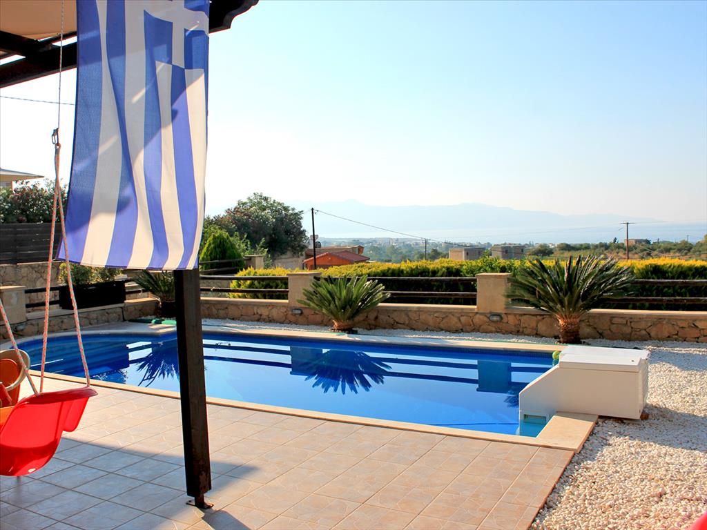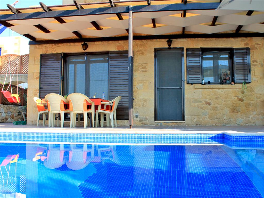 For sale 2-storey Villa with an area of 106 sqm on the island of Crete. The first floor consists of a living room, one kitchen, one bathroom. The second floor consists of 2 bedrooms, one bathroom. The Windows offer a magnificent view of the sea, the mountains. The object has solar panels for water heating, fireplace, air conditioning, awnings, barbecue, heating. The property is sold with furniture. The object has an alarm system. To the property belongs a Parking space, garden. The on-site swimming pool personal use. The Villa is located in the resort village, close to Chania town.