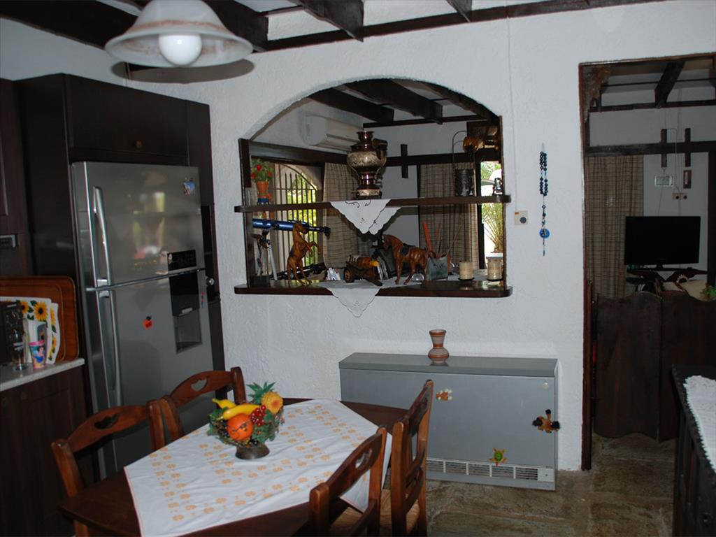 For sale house area of 110 sqm in the exclusive area of Kassandra Peninsula, Halkidiki. The cottage is fully furnished. Installed kitchen cabinets, the living room has a fireplace, the bedrooms have fitted wardrobes. On site is a basketball court and a Playground. Gorgeous resort, where the Villa is located, is famous for its beautiful views of the Aegean sea, the organized beach with Golden sand, gentle entry into the sea, a wide choice of restaurants and traditional taverns that will make Your menu memorable, and village - the perfect place to stay.