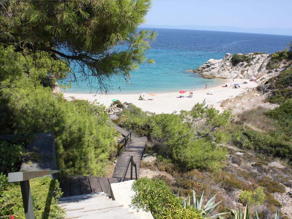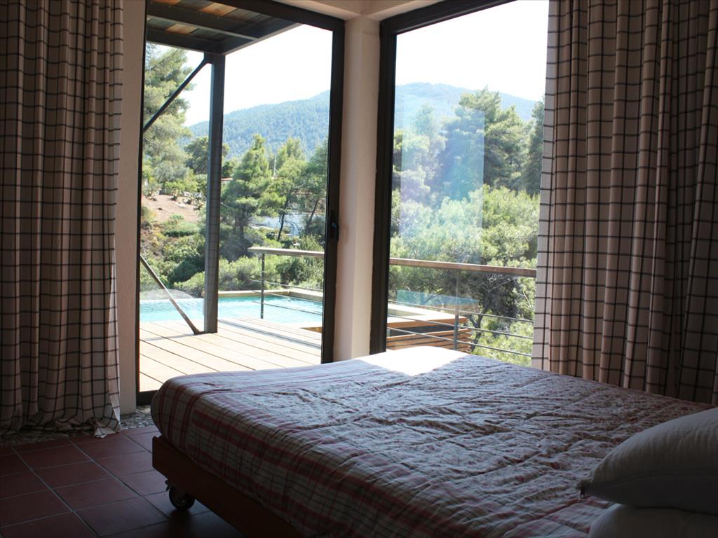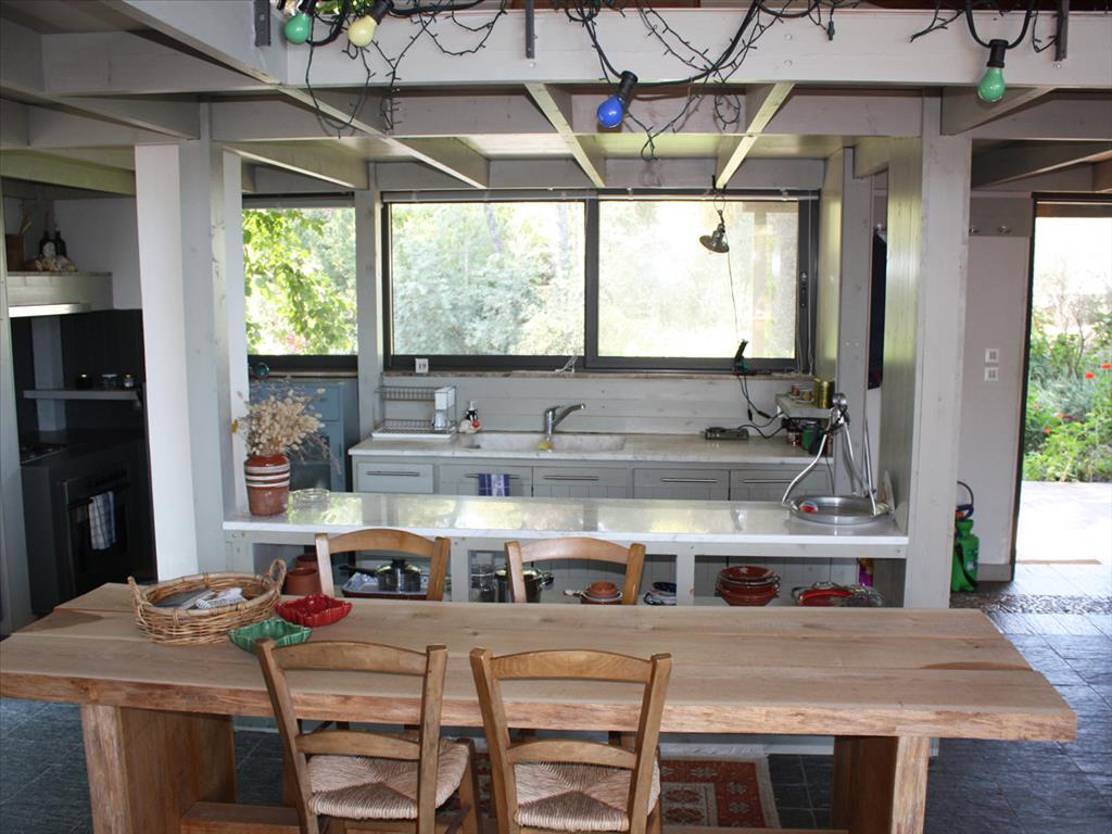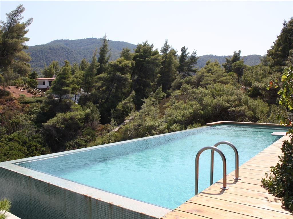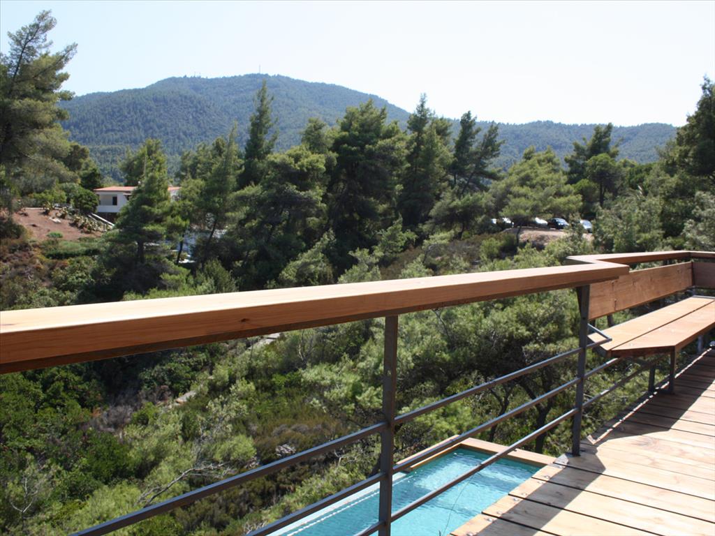 For sale 2-storey Villa of 200 sqm in Sithonia, Halkidiki, Greece The first floor consists of one bedroom, living room with kitchen, one shower room. The second floor consists of 2 bedrooms, living room with kitchen, 2 bathrooms. The Windows offer a magnificent view of the sea, the mountains and the forest. The object has a fireplace, barbecue, heating. The property is sold with furniture. To the property belongs a Parking space, garden. The on-site swimming pool personal use. The area around the house surrounded by tall pine trees and various herbs. The complex where the Villa is located, is one of the most expensive and elite of the entire Peninsula of Halkidiki.