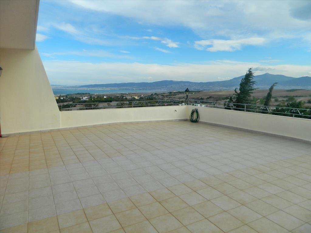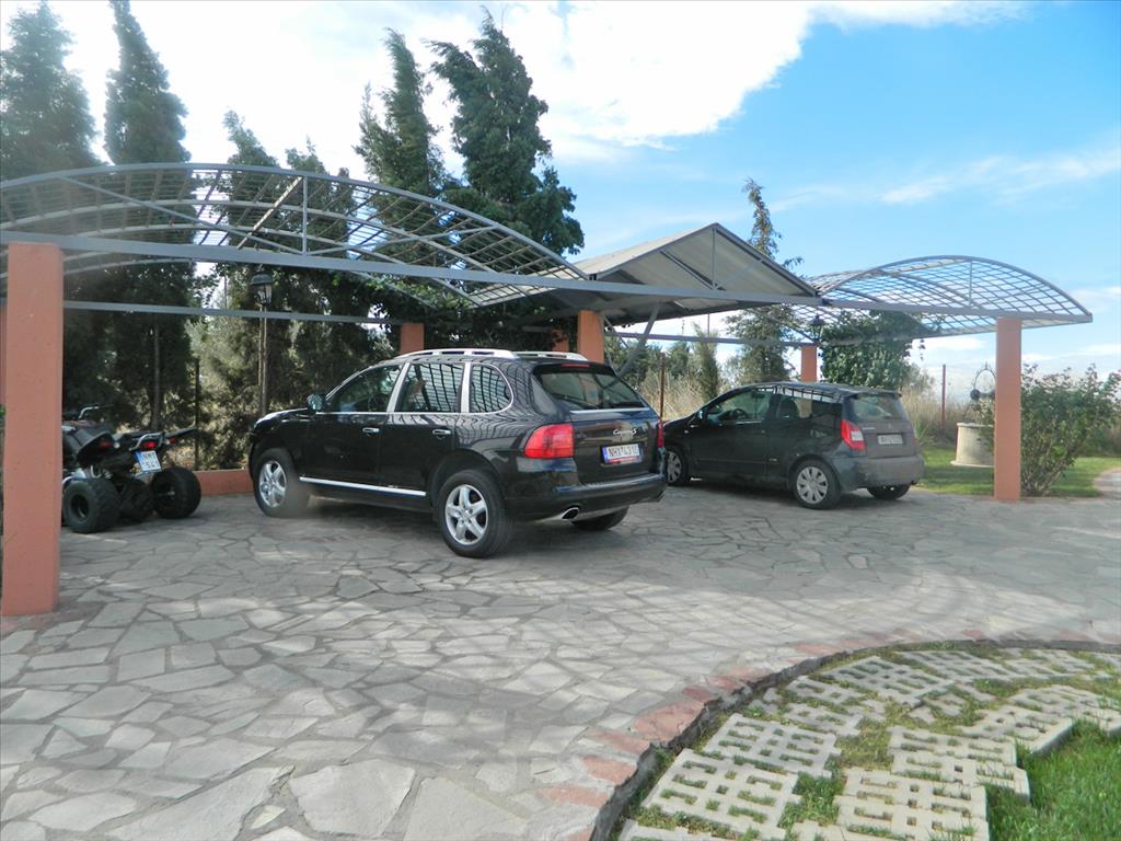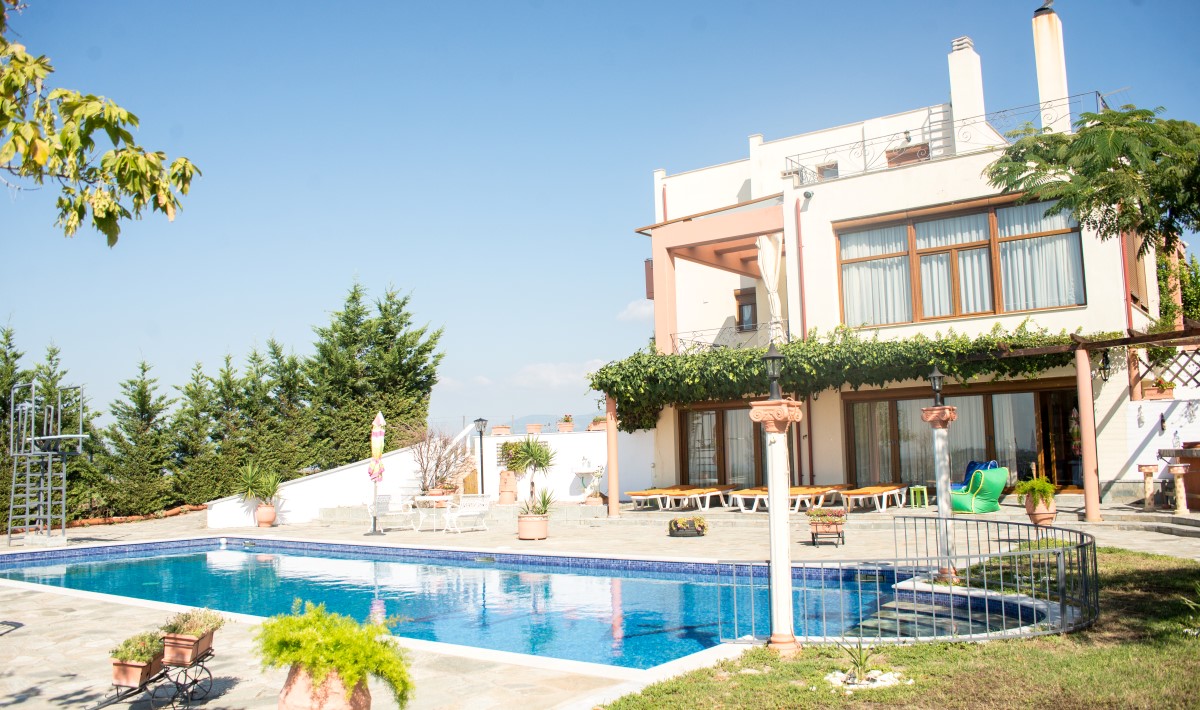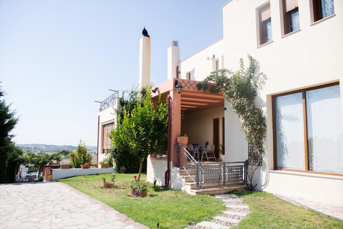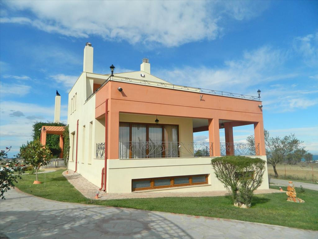 For sale a beautiful Villa in the outskirts of the city Thessaloniki with a very nice view of the Thermal Bay. The area of the three houses is 700 sq. m. On the ground floor there is a gym with sauna, games room, bedroom, bathroom, living room, kitchen, utility room and boiler room. The first floor consists of 2 living rooms, dining area, kitchen and bathroom. Upstairs are 3 bedrooms, each with private bathroom (one bathroom with Jacuzzi). In one bedroom there is a fireplace. The house is fully furnished, has heating, 4 fireplaces, 2 air conditioning, alarm system, installed Elevator. House raspolagaet spacious verandas. On the huge surrounding areas of 8300 square meters, planted grass, installed automatic irrigation system, swimming pool, bar, barbecue, shower. Also on-site addition the Villa built a small separate house. There is Parking space for 2 cars. A suburb of Thessaloniki is the ideal choice for those who wish to live near "civilization", everything necessary for a comfortable staying, while avoiding the hustle and bustle of the big city, but having the opportunity, if desired, easily and quickly to get to him. Another advantage of this region is the presence here of the beaches, while within the city Thessaloniki the opportunity to swim there.