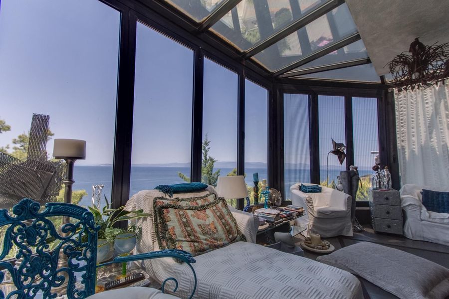 Villa for sale of 250 sqm on the Kassandra Peninsula, Halkidiki, Greece The object has a fireplace. The property is sold with furniture. To the property belongs a Parking space. For sale: two beautiful cottages on the beachfront. The house is located on a hill, where a clean, sandy beach by stairs. The house consist of three levels. The same house and have the following arrangement: the Ground floor includes a bedroom and a bathroom with shower. On the ground floor is a living room with kitchen and fireplace and a bathroom. The second floor includes a bedroom and a bathroom. The cottages are fully furnished, equipped with appliances, all rooms have air conditioning, satellite TV, fitted mosquito nets. In a total area of 4000 square meters, planted with turf, shower and barbecue. There is Parking space for 4 cars. Great location of homes will allow You to enjoy the beauty of nature, extraordinary views to the sea and clean air. Sandy beaches, annually awarded the "blue flag" of the EU for cleanliness. The house is not sold individually.