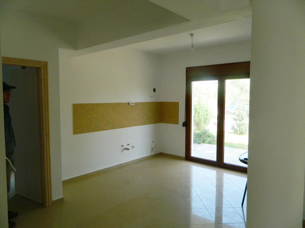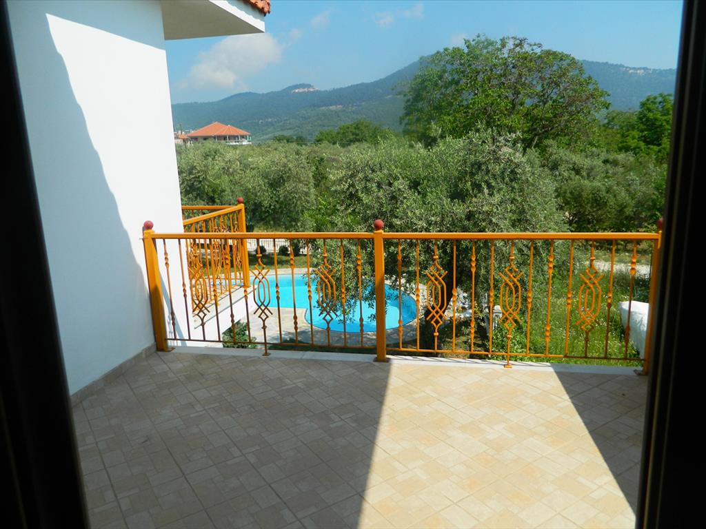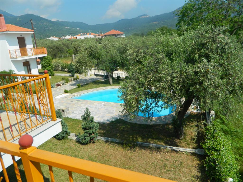 For sale cottage area of 125 sqm on the ove of Thassos. Two-storey cottage is located in a residential complex with landscaped grounds, covered with grass, which has a communal pool and planted trees. The house consists of living room with kitchenette, bedroom and bathroom on the ground floor. The second floor has three bedrooms, a bathroom and a large balcony overlooking the pool and beautiful green area. Kitchen furniture will be installed at the buyer's choice at the owner's expense. The price is 200.000 Euro. Other amenities include wiring for heating, bioremediation, solar panel water heating, automatic lighting and watering, etc.