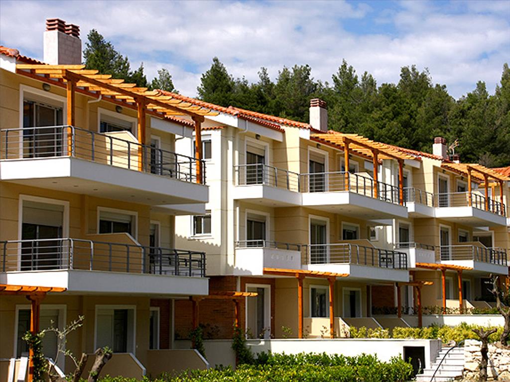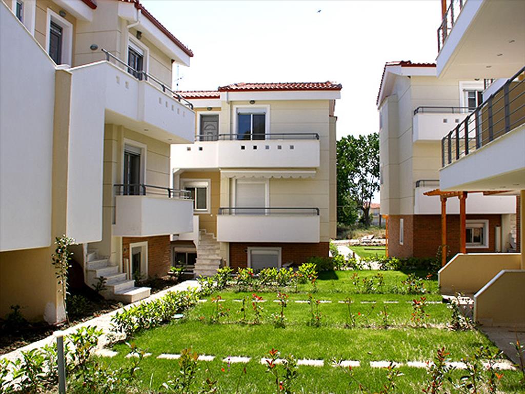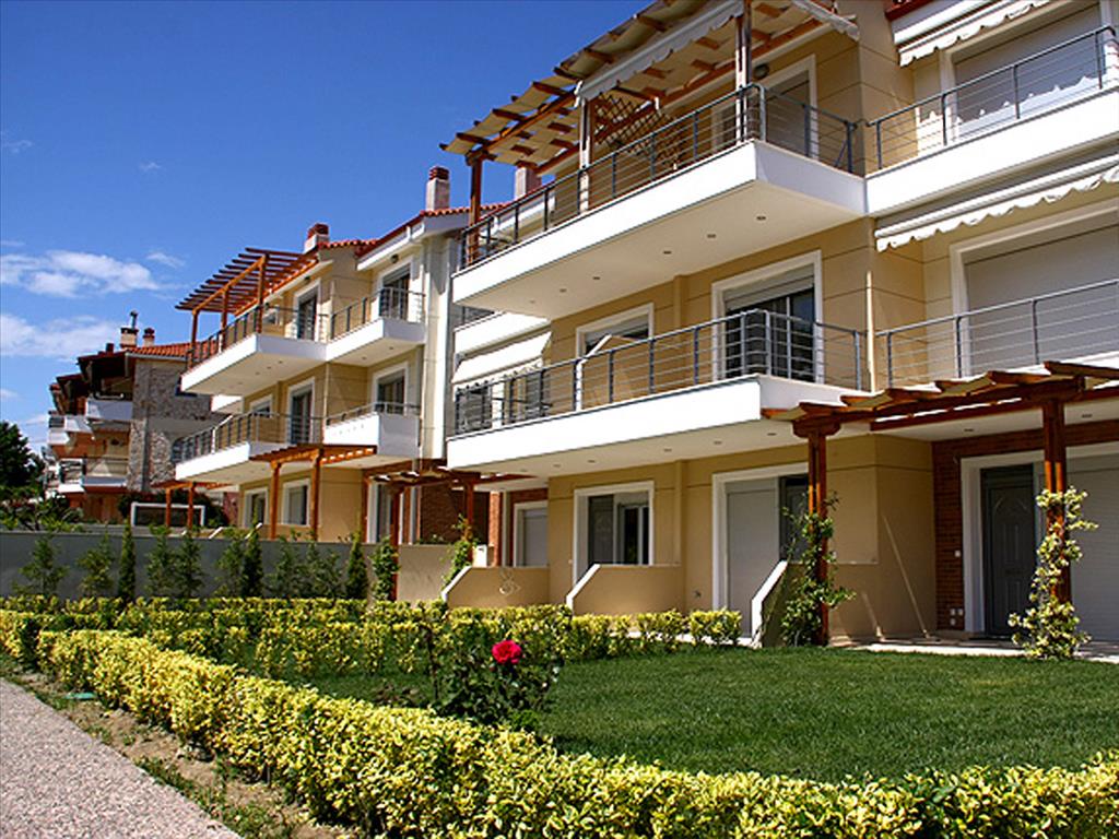 Sold apartments in the complex on the second line from the sea in Kassandra. Here you can get all three floors, the bottom two floors are duplex apartments on the third individual. The duplex apartments on the ground floor are: living room with fireplace and kitchen and a bathroom; on the second: 2 bedrooms and a bathroom. Apartment on the third floor consists of a living room with kitchen, 2 bedrooms and bathroom. Square duplex apartments are 57, 61 and 67 sq. m, prices - from 105000 to 175000 euros, depending on the area and proximity of the house to the sea. Apartment on the third floor have the area of 43, 52 and 62 square metres and prices are from 85,000 to 175,000 euros. Each apartment has alarm system, Internet and satellite TV, are air-conditioned. The complex is a well maintained lawn with automatic irrigation system and lighting, and for each house there is Parking place and small private area. The complex is located in a quiet village where the mountains next to the cozy sandy beach and promenade, and the sea is amazing clean! The village has all the infrastructure, there are many bars and taverns can be expensive to taste delicious national cuisine and fresh seafood. The village is known for the ongoing annual festival, which will feature the famous Greek singers, there are theatrical performances.