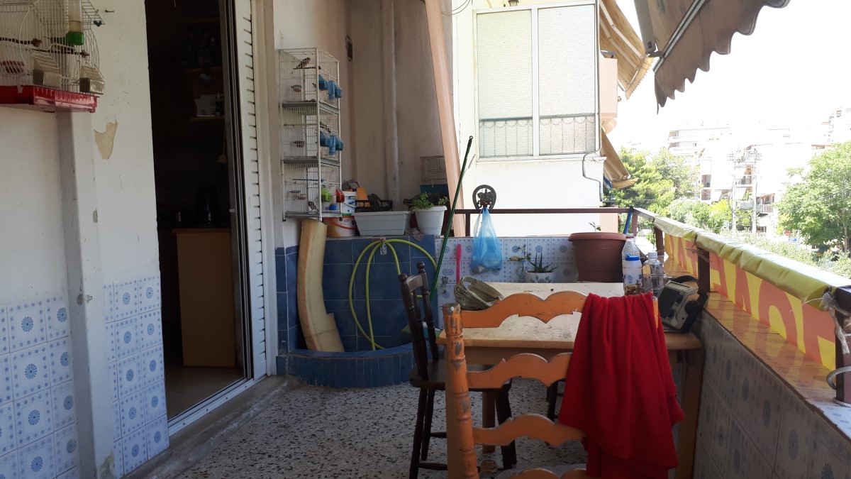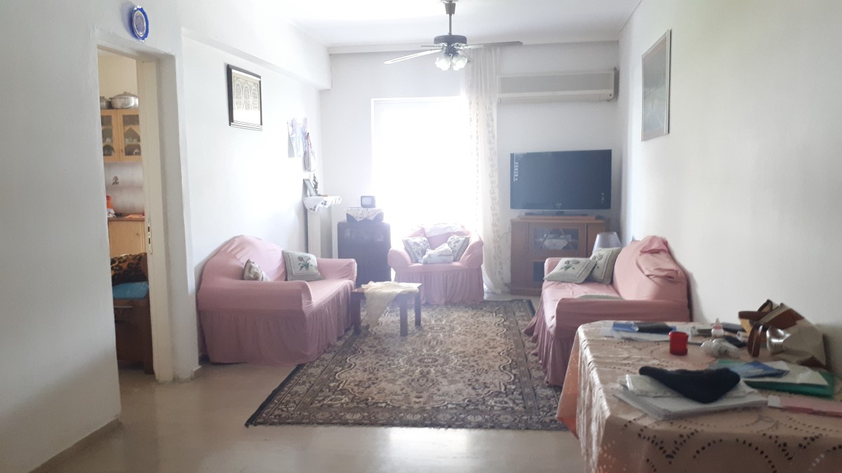 Apartment area of 108 sq. m in Athens. The apartment is located on the third floor and consists of 2 bedrooms, living room with kitchen, one kitchen, one bathroom, one storeroom. The object has air conditioning, awnings, heating. The building is an Elevator. The apartment is located in the district of Kallithea.
