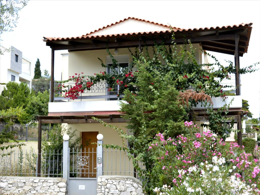 Sale townhouse of 180 sqm in the attic. The townhouse is on 3 levels. The basement consists of 2 bedrooms, living room, one bathroom. The first floor consists of living room with kitchen, one bathroom. The second floor consists of 3 bedrooms, one bathroom. The Windows offer views of the sea, the mountains, the city, the forest. The object has solar panels for hot water, fireplace, heating. The building is an Elevator. To the property belongs a Parking place, garden, garage. Townhouse located in the town of Porto rafti.