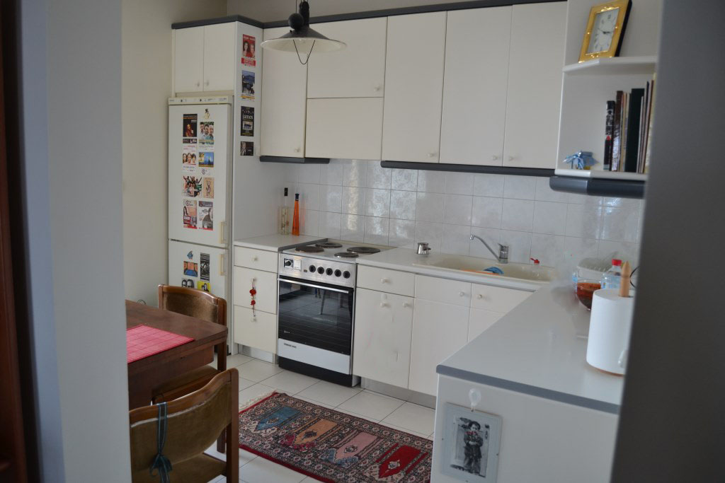 For sale apartment with an area of 117 sqm on the island of Crete. The apartment is located on the fifth floor and consists of 3 bedrooms, living room, one kitchen, one bathroom, one storeroom. The Windows offer a magnificent view of the sea, the mountains and the city. The object has solar panels for water heating, fireplace, air conditioning, heating. The building is an Elevator. To the property belongs a Parking space, garden.