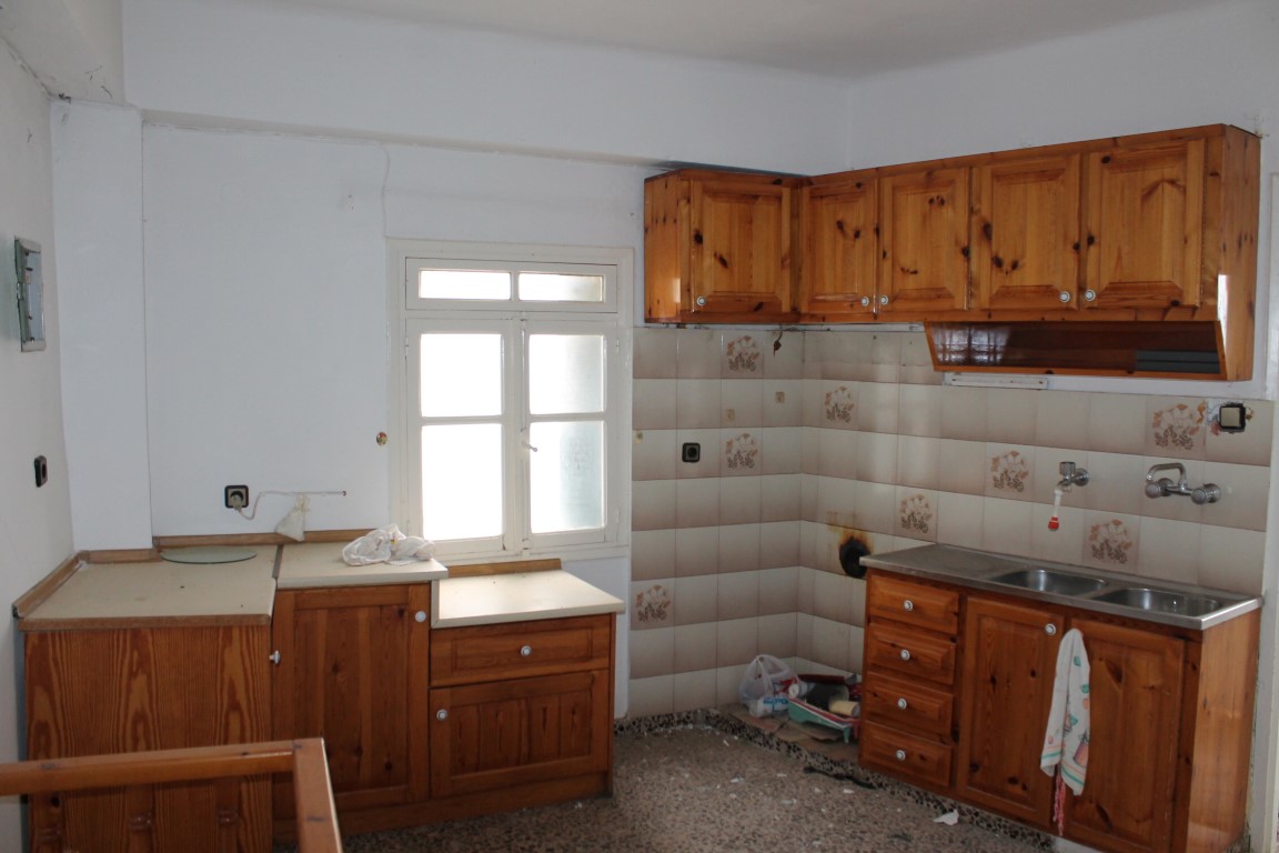 Sold by dilapidated housing, townhouse of 100 square meters on the island of Crete. The townhouse is on 3 levels. The basement consists of one storeroom. The first floor consists of one bedroom, living room, one kitchen. The second floor consists of 2 bedrooms, one kitchen, one bathroom. The townhouse enjoys a corner location. The Windows offer views of the mountains and the city.