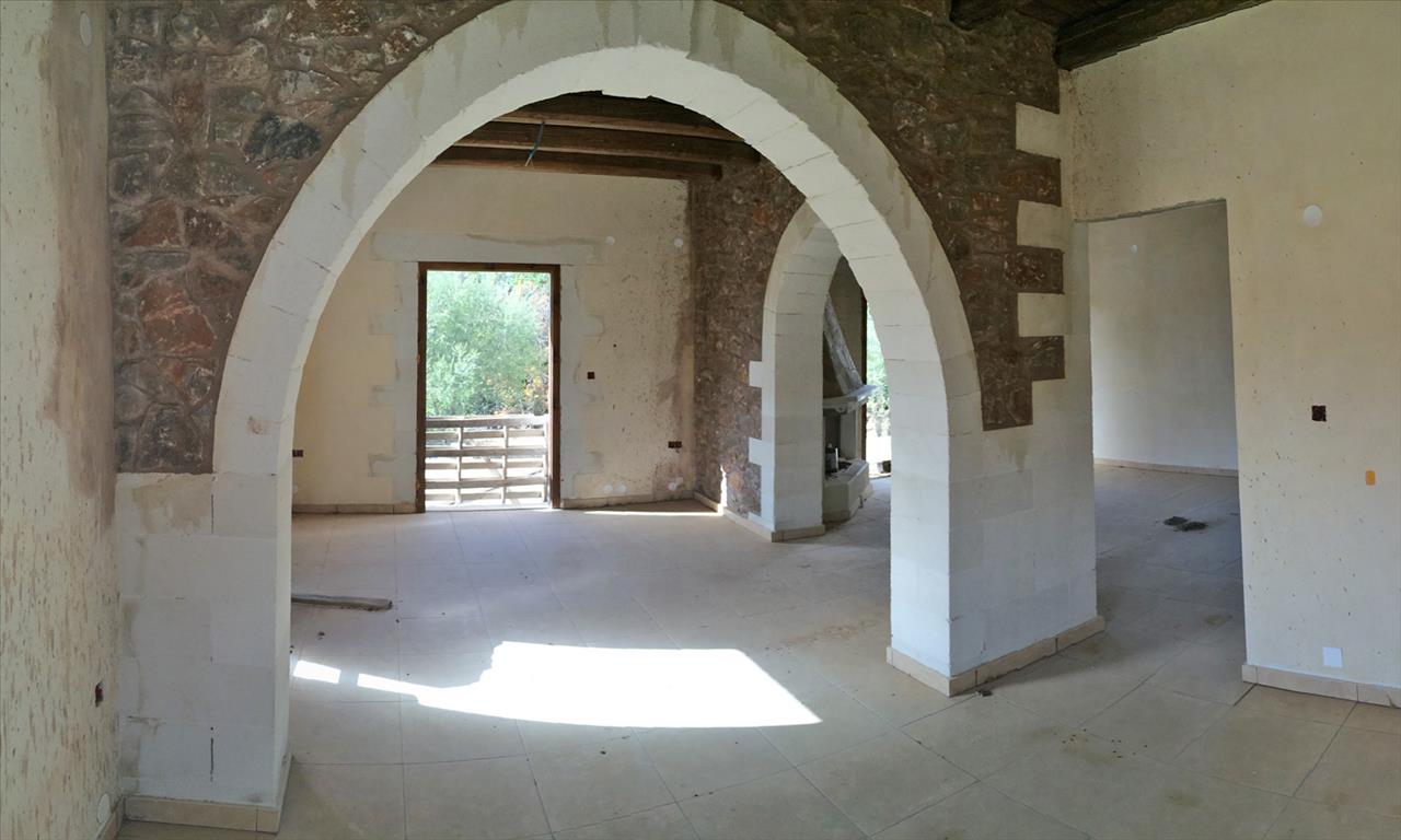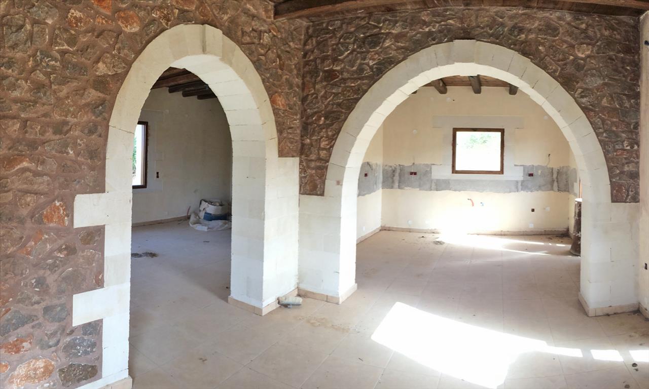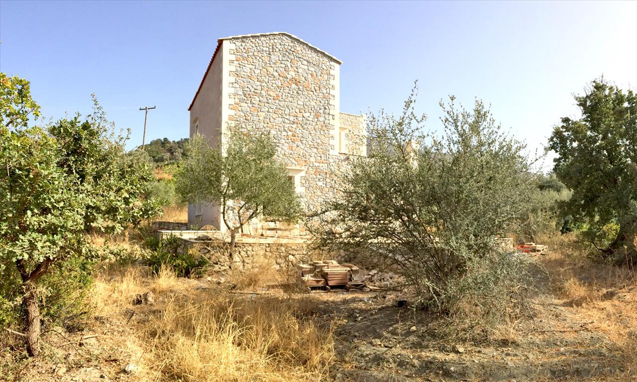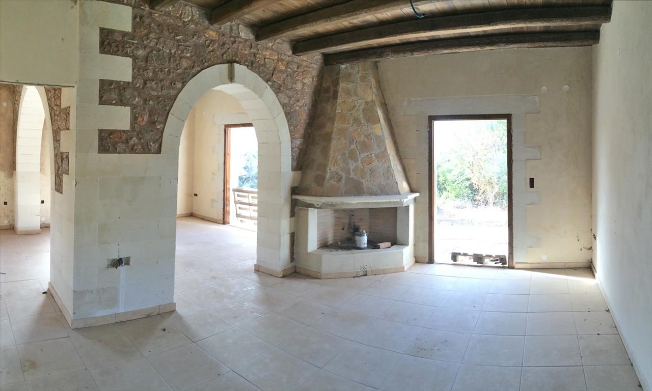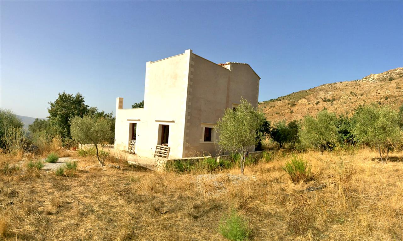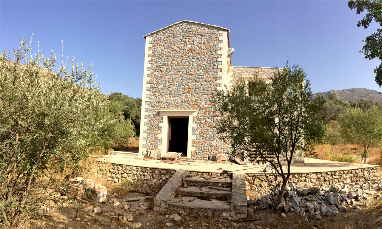 For sale 2-storey cottage area of 120 sq m on the island of Crete under construction. The first floor consists of a living room, one kitchen, one bathroom. The second floor consists of 2 bedrooms, one bathroom. The object has solar panels for hot water, fireplace, heating. The cottage is under construction.