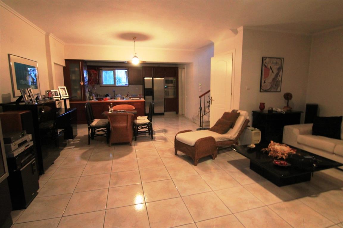 Sale house area of 190 sq m in Thessaloniki. The townhouse is on 3 levels. The first floor consists of living room with kitchen, one shower room, one pantry. The second floor consists of a living room, one bathroom. The third floor consists of 3 bedrooms, one bathroom. The townhouse enjoys a corner location. The object has a fireplace, air conditioning, heating. The object has an alarm system. To the property belongs a Parking space, garden.