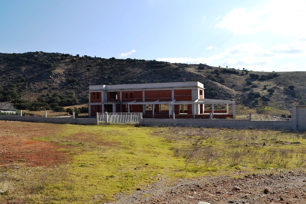 Business for sale with an area of 2040 sq m in the suburbs of Thessaloniki. The Windows offer a magnificent view of the sea, the mountains and the forest. The room can be use as hotel business, or entertainment center. The building is under construction.