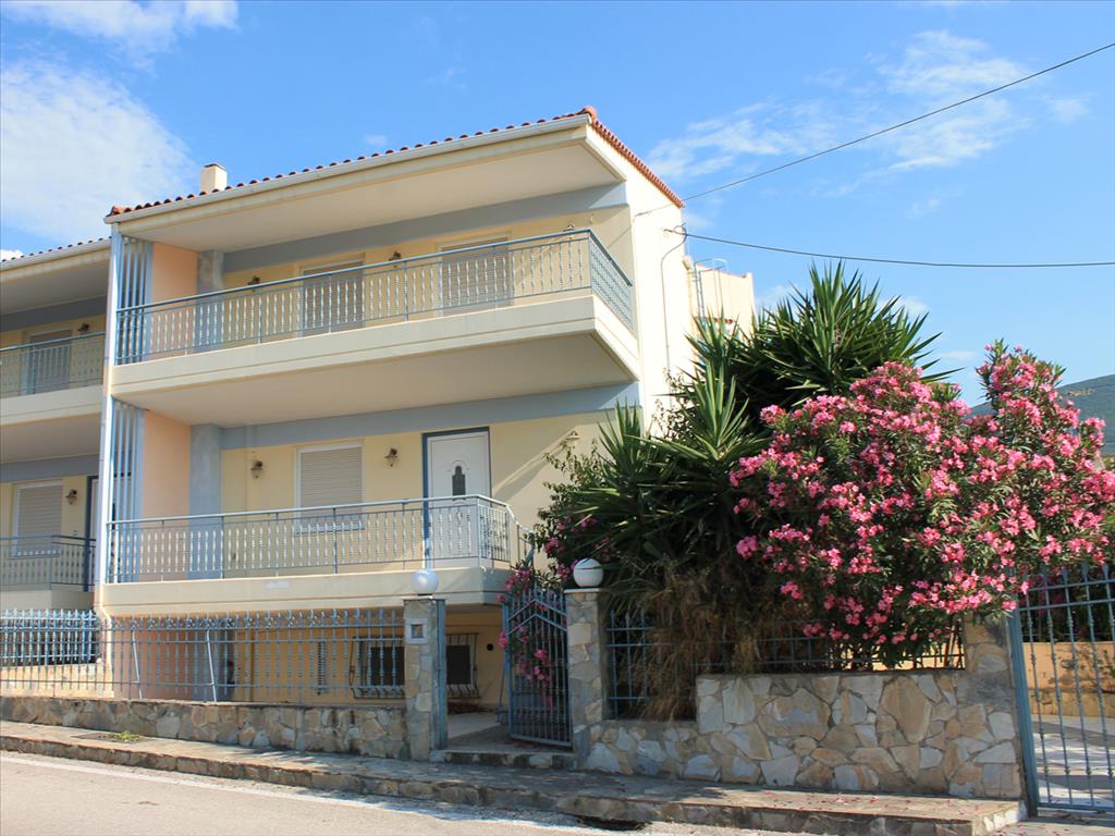 Sale house area of 190 sq m in the Western Peloponnese. The townhouse is on 3 levels. The first floor consists of living room with kitchen, one shower room. The second floor consists of a living room, one kitchen, one bathroom. The third floor consists of 3 bedrooms, one bathroom. The Windows offer views of the mountains. The object has a fireplace, barbecue, heating. To the property belongs a garage.