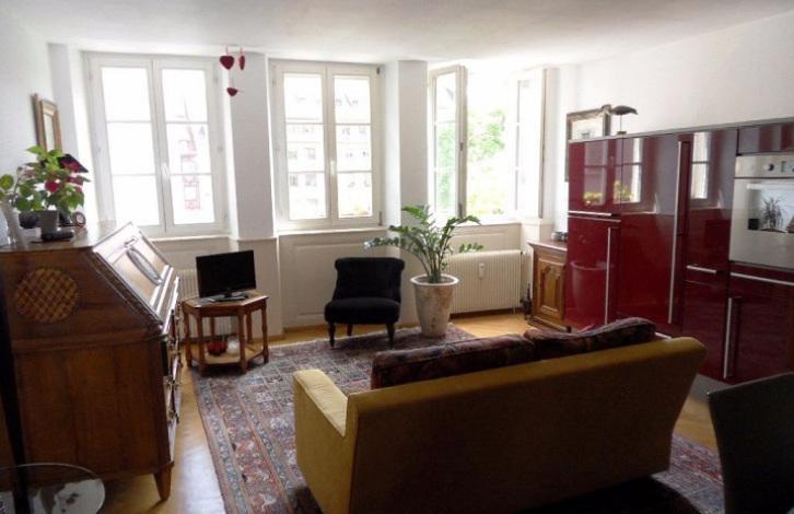 Двухкомнатная квартира с прекрасным видом на улицу и площадь Трипье в старинном здании, расположенном на улице Тоннелье, в самом центре Страсбурга, регион Эльзас, Франция. Сердце города - это то место, где в окружении множество магазинов, кафешек, учебных заведений и прочих удобств.
