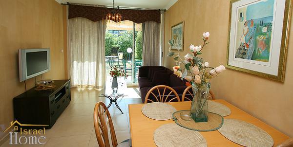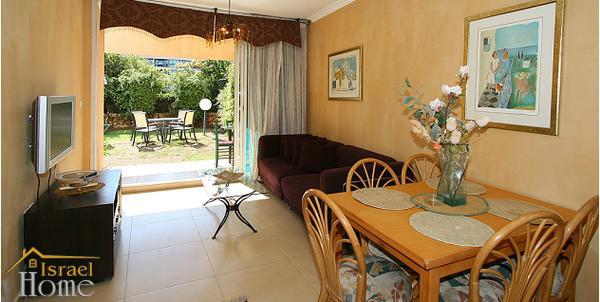 Apartments in Caesarea, garden apartment in gated complex Neot Golf. The complex is located in the 3-minute drive from the beach, the complex has a large indoor swimming pool, gym, mini-market.