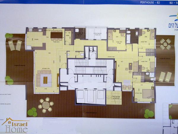 The new penthouse in the exclusive area of the city of Netanya, Ir Yamim. The house is situated on the seafront. On the upper roof of the penthouse has a large and deep swimming pool! Panoramic sea view, double underground parking, storage room.