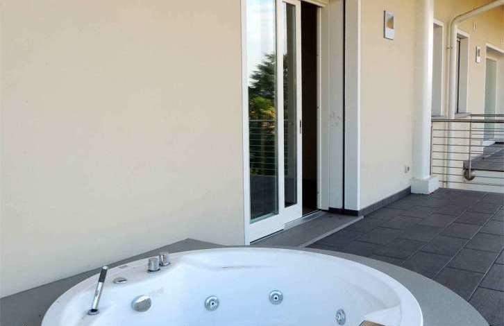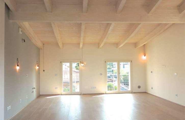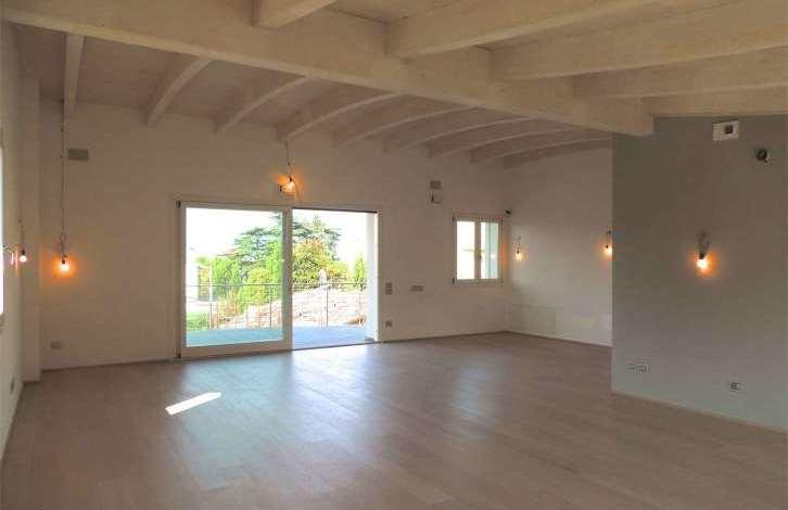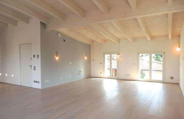 In Desenzano del Garda there is a new penthouse with a view of the lake, located in a small building, conveniently located to the center and just 200 meters from the lake. The apartment is built in energy efficiency class A, is located on the third floor and consists of: a spacious living room opening onto a terrace (25 sq. m.), a separate kitchen and a bathroom; Three bedrooms and two bathrooms. The main bedroom opens onto a terrace (25 sq. m.) with a Jacuzzi. Automated control system "smart house", electric shutters, alarm, underfloor heating, air conditioners, modern plumbing, bleached wooden beamed ceilings. Individual decoration is possible. There is a garage for two cars.