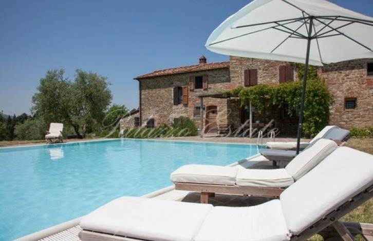 Traditional stone house on a hill in a panoramic position area of 556 square meters. m., 29 km from Florence, with an extension (87 sq. m.) 11 hectares of land with a swimming pool, a vineyard and an olive grove.