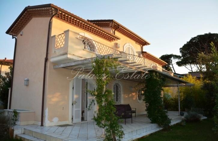 ito1963 Three-storey villa of approximately 180 sq. m. It located 300 meters from the sea in Marina di Pietrasanta. Ground floor: living room, dining room, kitchen, terrace, guest bathroom, master bedroom with bathroom. Second floor: 2 bedrooms with bathrooms and a terrace. Ground floor: kitchen, bathroom, bedroom with bathroom. A small area with barbecue, lawn and parking places. Additional information on request. Energy class «G»