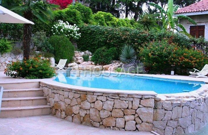 In the residential area of San Remo at a distance of about 1 km from the sea for sale three-storied villa with sea and city views. The total area is 210 sq. m. On the ground floor dining room with summer kitchen, large garage, laundry room, bathroom. On the second floor hallway, living room with fireplace, kitchen, office, bathroom, 2 terraces overlooking the sea. On the 3rd floor: 3 bedrooms, 2 bathrooms, 2 balconies. There is a garden of 550 sq. m. basement, garage. Pool made on design project with artificial waves!