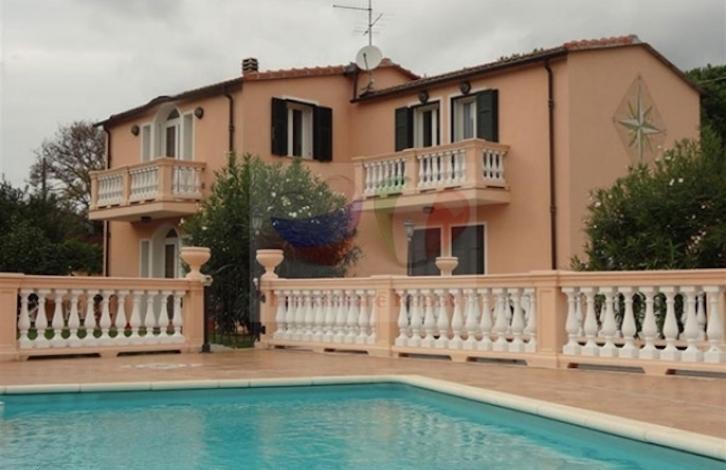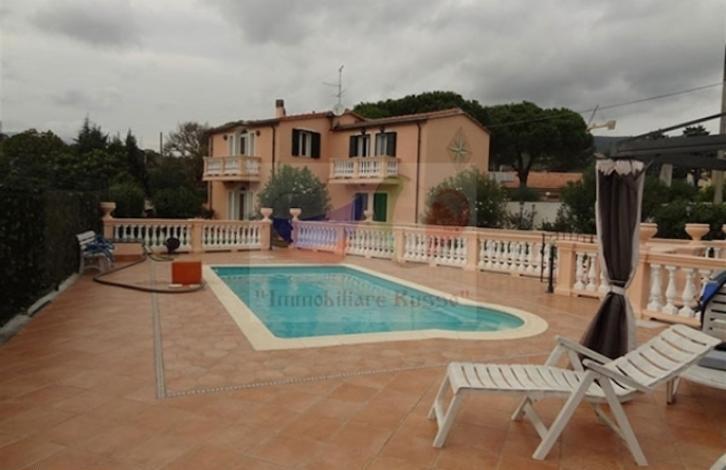 For sale is a villa with a pool and a beautiful garden in the historic city of Imperia. The terrace and balconies offer panoramic views of the mountains. Located in a quiet green area, 2 km from the sea. The villa is surrounded by a well-kept garden with stone paths and recreation areas.