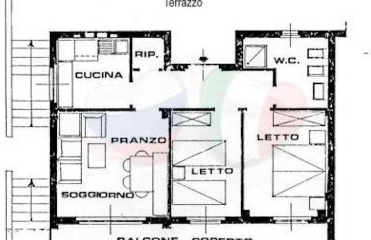 The apartment on the top floor consists of a living room, a kitchen, two bedrooms, a bathroom and a large terrace. There is parking and a private garden.