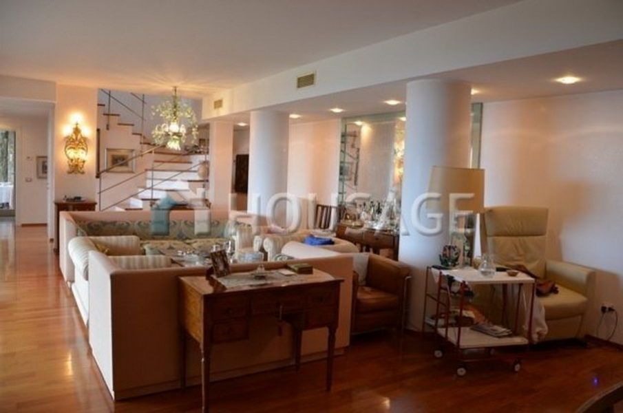 Новая 3-х этажная вилла в Неоклассическом стиле с видом на море. На первом уровне находится просторная гостиная с французскими окнами от потолка до пола, Венецианской штукатуркой, паркетом из вишневого дерева и элементами мрамора и Муранского стекла в интерьере, а также отдельная кухня, столовая, 2 кладовые, туалет и терраса по периметру с выходом в сад. На втором уровне находятся 3 спальные комнаты с террасами и 2 ванные. На третьем уровне находится мансардное помещение, используемое в качестве кабинета, архив и прачечная с туалетом. Уровни связаны между собой элегантной лестницей и лифтом. На цокольном этаже находится гараж для двух автомобилей.