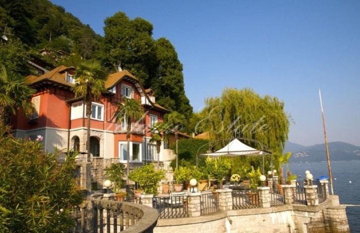 ipi0164 Amazing 4-level villa era right on the shore of Lake Maggiore, 400 sq. m. Land area - 900 sq. m. A stunning view of the lake !! The main building consists of 3 levels and basement: On the ground floor there is a spacious entrance hall, two-bedroom with fireplace and bathroom, 2 large terraces with views of the lake area of 250 m2. Second floor: 2 bedrooms with bathroom and dressing room. Third floor: 2 bedrooms with bathroom and dressing room. Ground floor: dining room, kitchen, guest bathroom, boiler room. The building is completely renovated in 1998. There is also a guest house with 2 bedrooms and bathroom. There is a garage for 2 cars.
